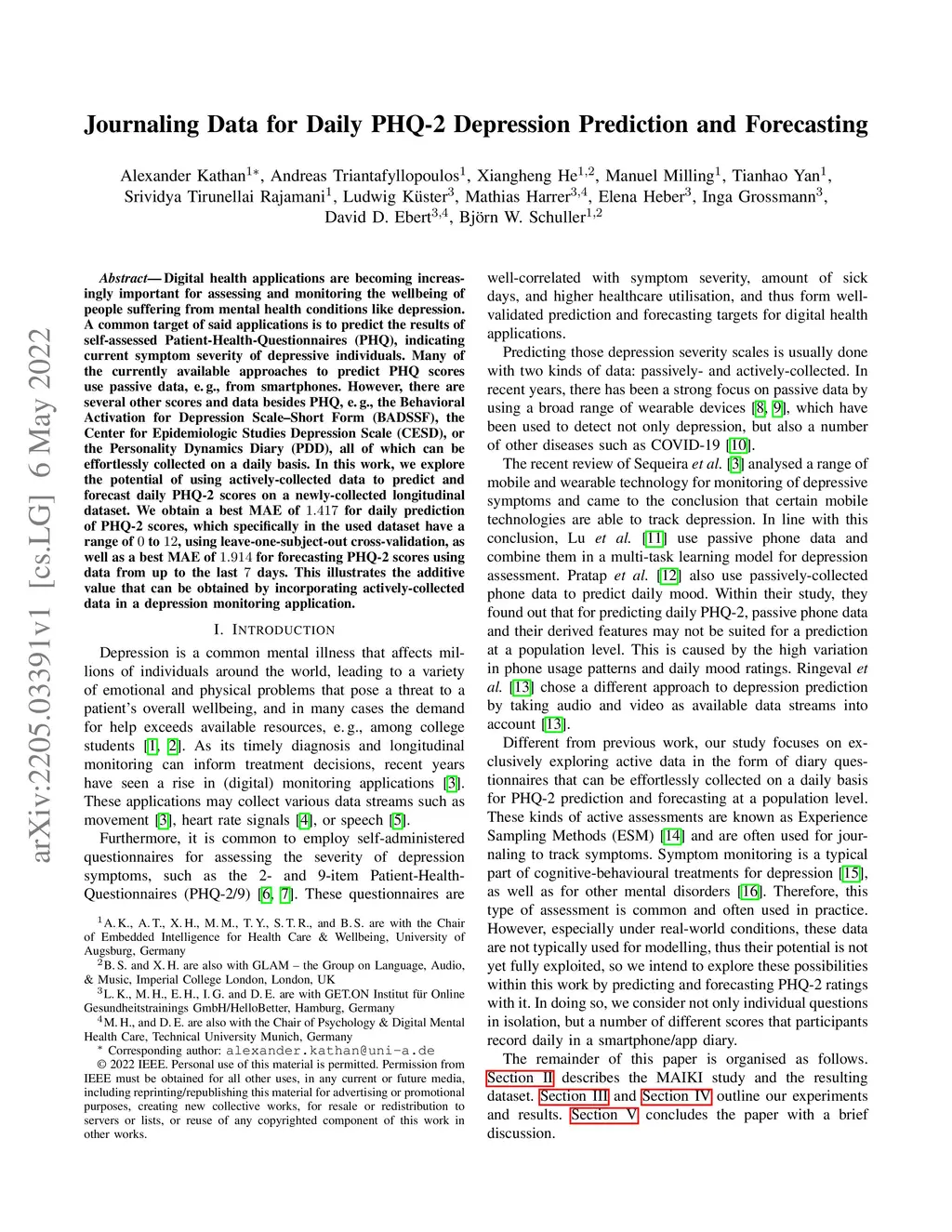 Journaling Data for Daily PHQ-2 Depression Prediction and Forecasting