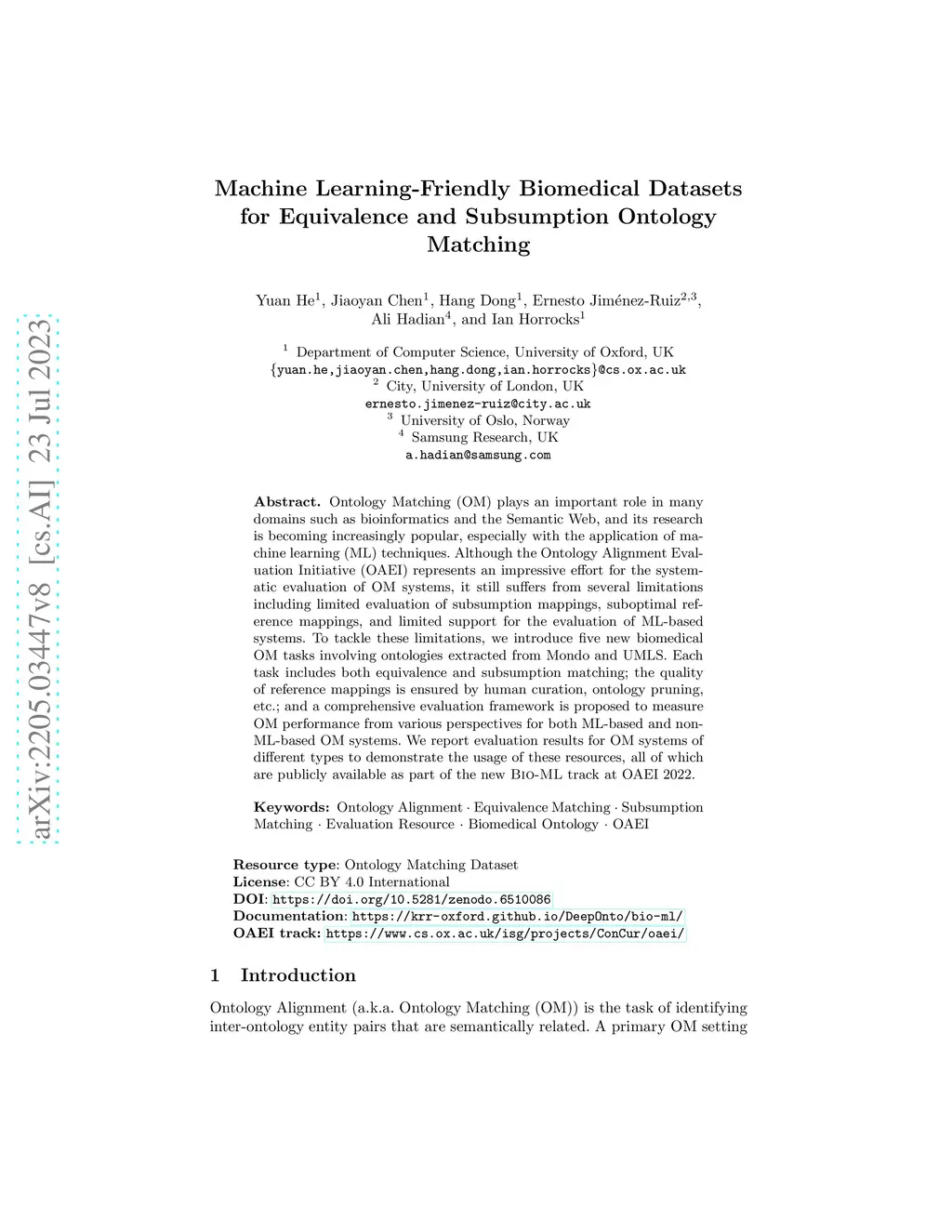 Ontology Matching (OM) plays an important role in many domains such as bioinformatics and the Semantic Web, and its research is becoming increasingly popular, especially with the application of machine learning (ML) techniques. Although the Ontology Alignment Evaluation Initiative (OAEI) represents an impressive effort for the systematic evaluation of OM systems, it still suffers from several limitations including limited evaluation of subsumption mappings, suboptimal reference mappings, and limited support for the evaluation of ML-based systems. To tackle these limitations, we introduce five new biomedical OM tasks involving ontologies extracted from Mondo and UMLS. Each task includes both equivalence and subsumption matching; the quality of reference mappings is ensured by human curation, ontology pruning, etc.; and a comprehensive evaluation framework is proposed to measure OM performance from various perspectives for both ML-based and non-ML-based OM systems. We report evaluation results for OM systems of different types to demonstrate the usage of these resources, all of which are publicly available as part of the new BioML track at OAEI 2022.