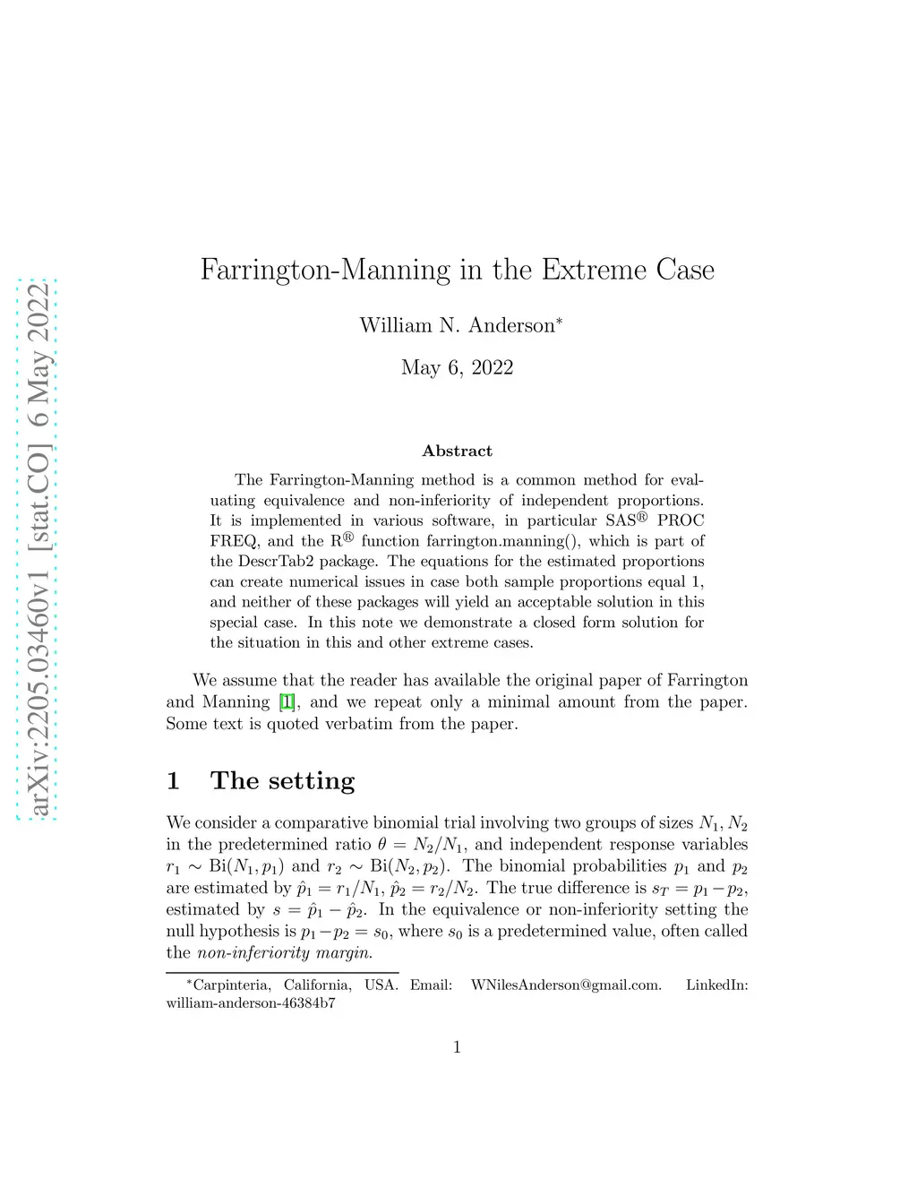 Farrington-Manning in the Extreme Case