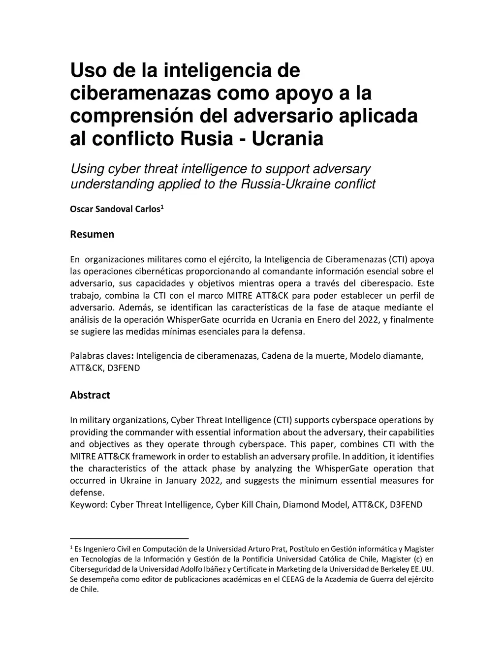 In military organizations, Cyber Threat Intelligence (CTI) supports cyberspace operations by providing the commander with essential information about the adversary, their capabilities and objectives as they operate through cyberspace. This paper, combines CTI with the MITRE ATT&CK framework in order to establish an adversary profile. In addition, it identifies the characteristics of the attack phase by analyzing the WhisperGate operation that occurred in Ukraine in January 2022, and suggests the minimum essential measures for defense.