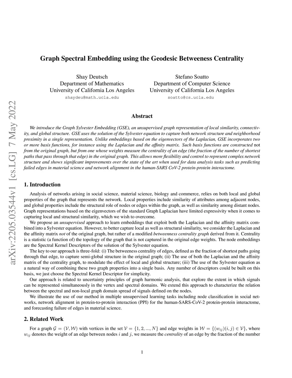 Graph Spectral Embedding using the Geodesic Betweeness Centrality