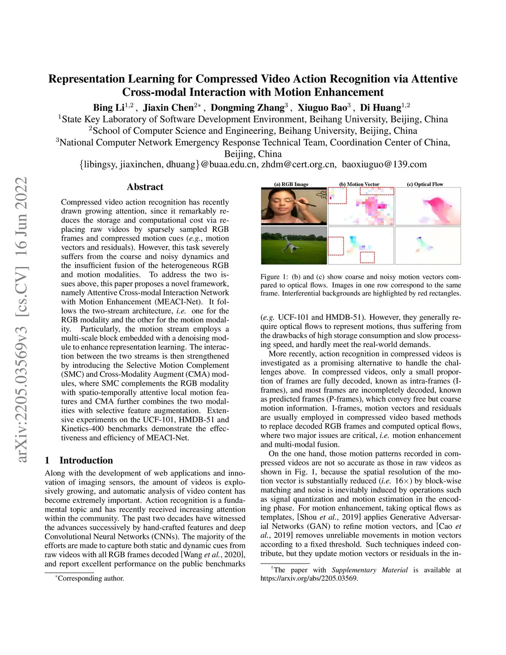 Representation Learning for Compressed Video Action Recognition via Attentive Cross-modal Interaction with Motion Enhancement