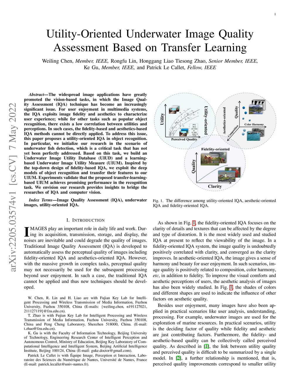 Utility-Oriented Underwater Image Quality Assessment Based on Transfer