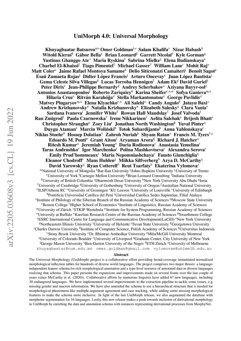 UniMorph 4.0: Universal Morphology