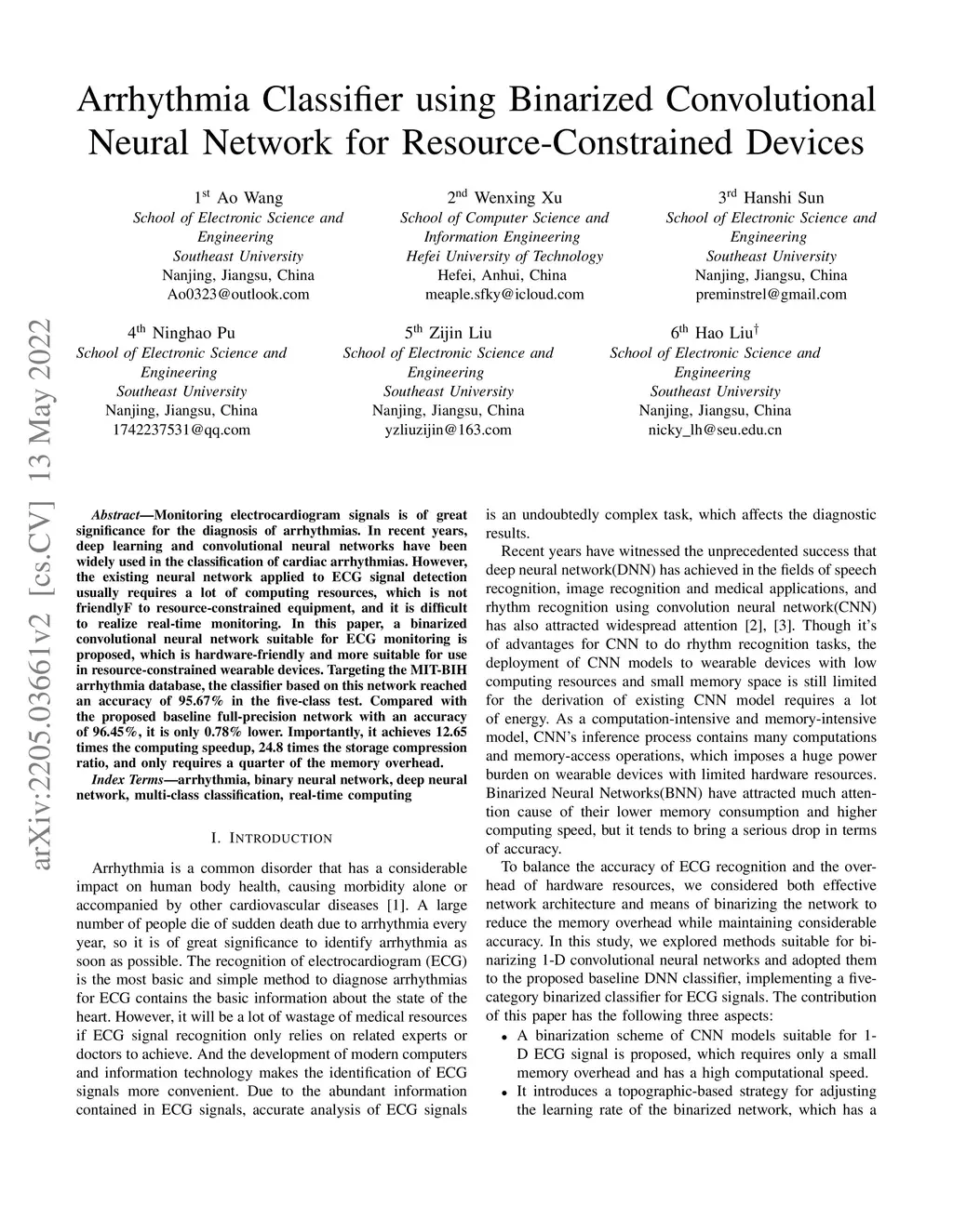 Arrhythmia Classifier using Binarized Convolutional Neural Network for