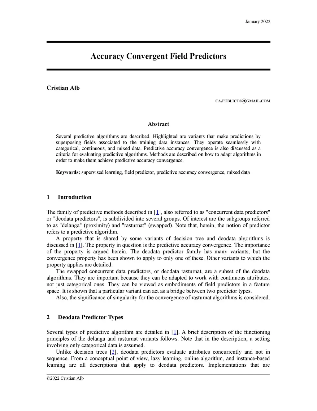 Several predictive algorithms are described. Highlighted are variants that make predictions by superposing fields associated to the training data instances. They operate seamlessly with categorical, continuous, and mixed data. Predictive accuracy convergence is also discussed as a criteria for evaluating predictive algorithms. Methods are described on how to adapt algorithms in order to make them achieve predictive accuracy convergence.