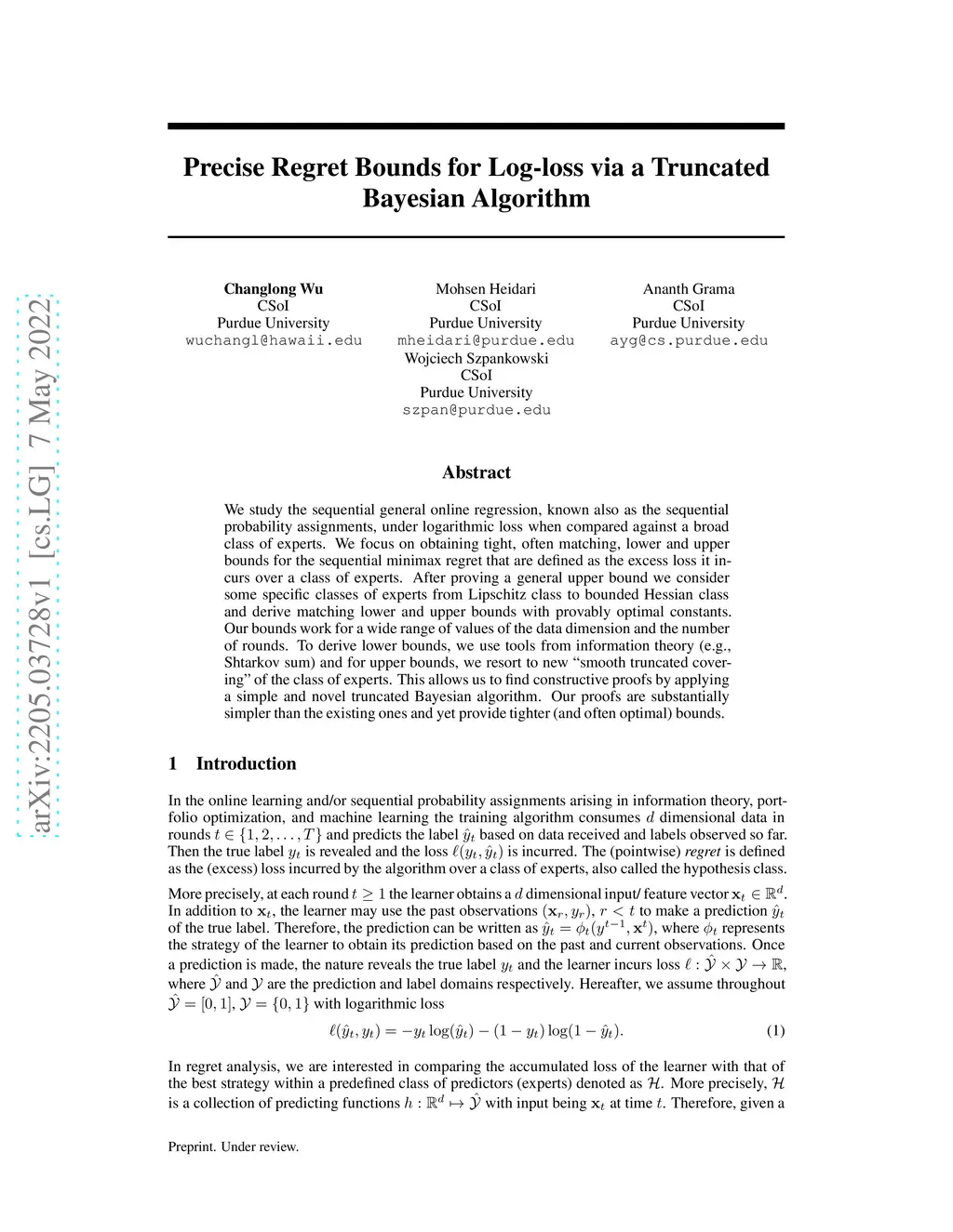 Precise Regret Bounds for Log-loss via a Truncated Bayesian Algorithm