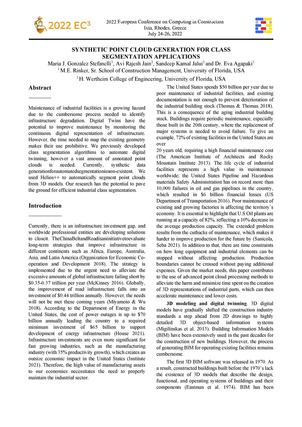 Maintenance of industrial facilities is a growing hazard due to the cumbersome process needed to identify infrastructure degradation. Digital Twins have the potential to improve maintenance by monitoring the continuous digital representation of infrastructure. However, the time needed to map the existing geometry makes their use prohibitive. We previously developed class segmentation algorithms to automate digital twinning, however a vast amount of annotated point clouds is needed. Currently, synthetic data generation for automated segmentation is non-existent. We used Helios++ to automatically segment point clouds from 3D models. Our research has the potential to pave the ground for efficient industrial class segmentation.