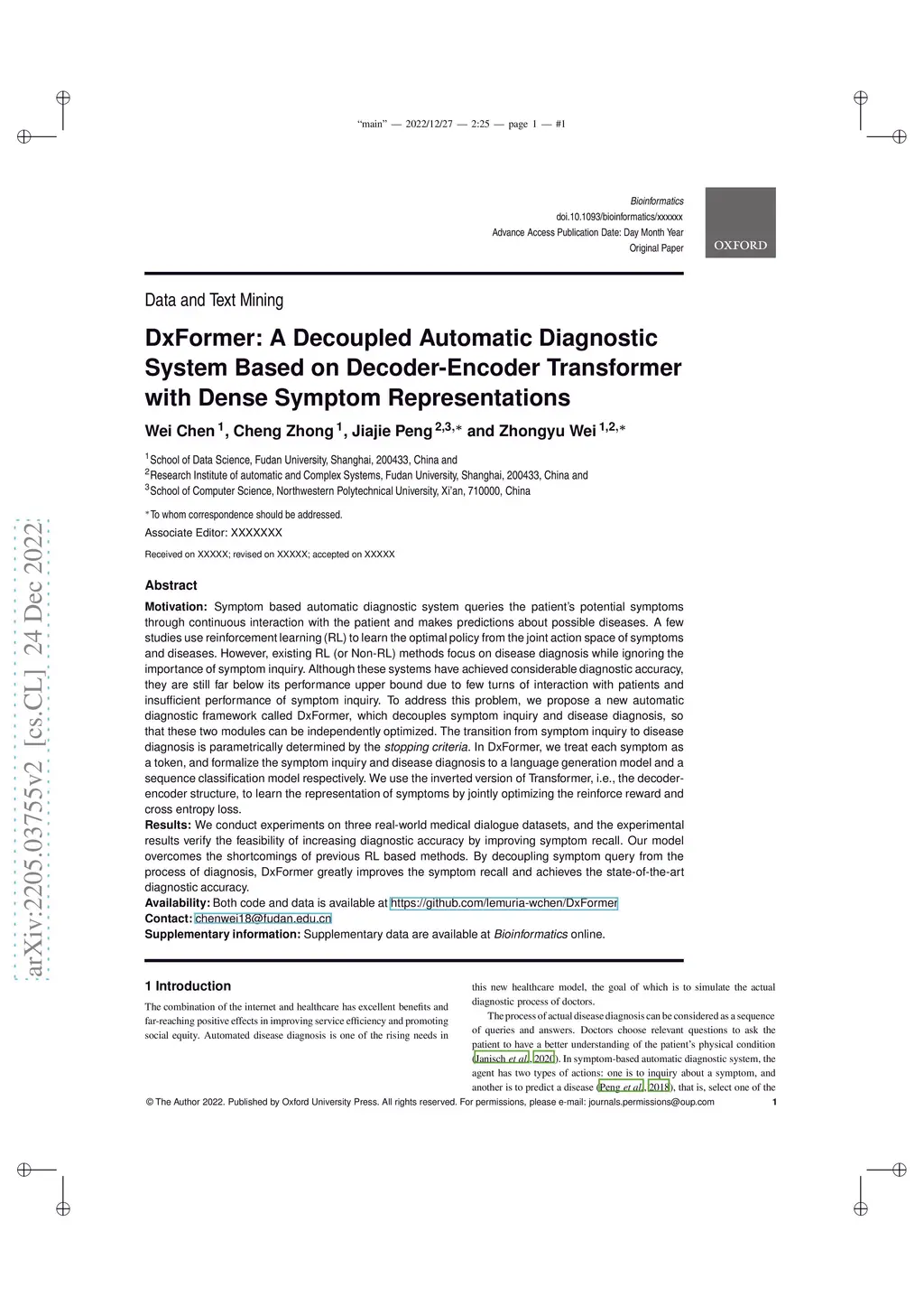 DxFormer: A Decoupled Automatic Diagnostic System Based on