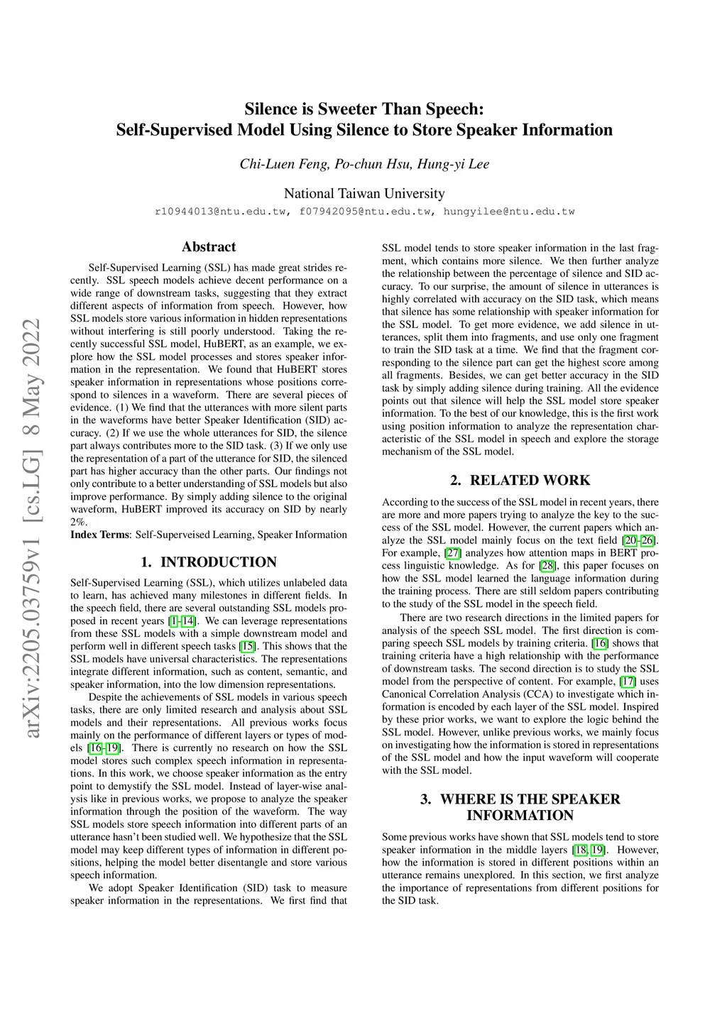 Self-Supervised Learning (SSL) has made great strides recently. SSL speech models achieve decent performance on a wide range of downstream tasks, suggesting that they extract different aspects of information from speech. However, how SSL models store various information in hidden representations without interfering is still poorly understood. Taking the recently successful SSL model, HuBERT, as an example, we explore how the SSL model processes and stores speaker information in the representation. We found that HuBERT stores speaker information in representations whose positions correspond to silences in a waveform. There are several pieces of evidence. (1) We find that the utterances with more silent parts in the waveforms have better Speaker Identification (SID) accuracy. (2) If we use the whole utterances for SID, the silence part always contributes more to the SID task. (3) If we only use the representation of a part of the utterance for SID, the silenced part has higher accuracy than the other parts. Our findings not only contribute to a better understanding of SSL models but also improve performance. By simply adding silence to the original waveform, HuBERT improved its accuracy on SID by nearly 2%.