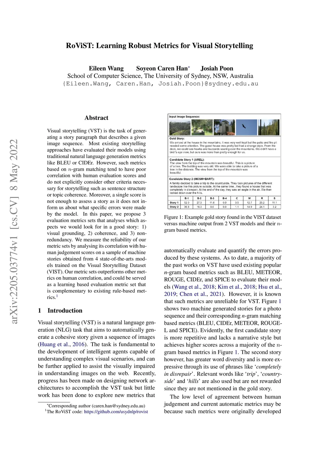 RoViST:Learning Robust Metrics for Visual Storytelling