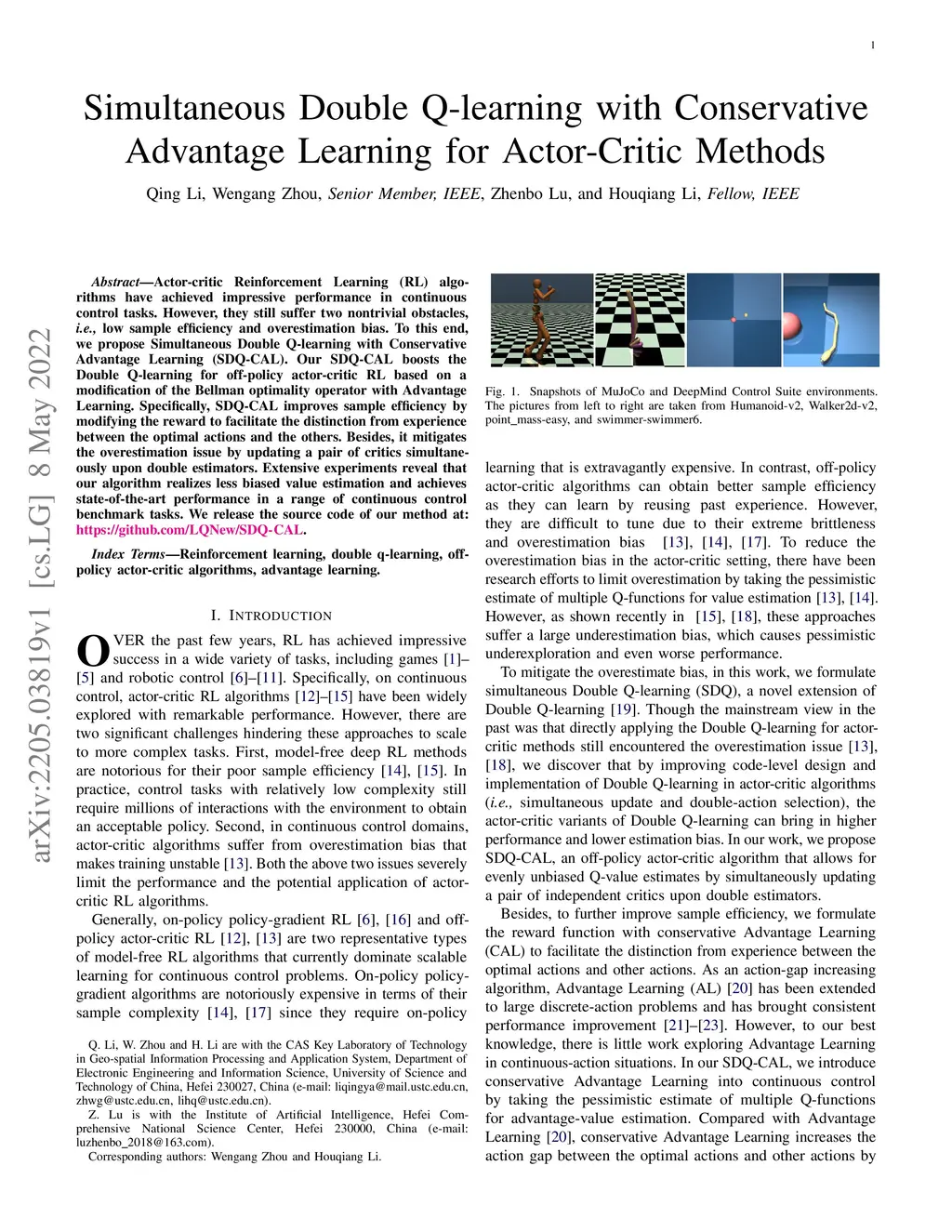 Simultaneous Double Q-learning with Conservative Advantage Learning for