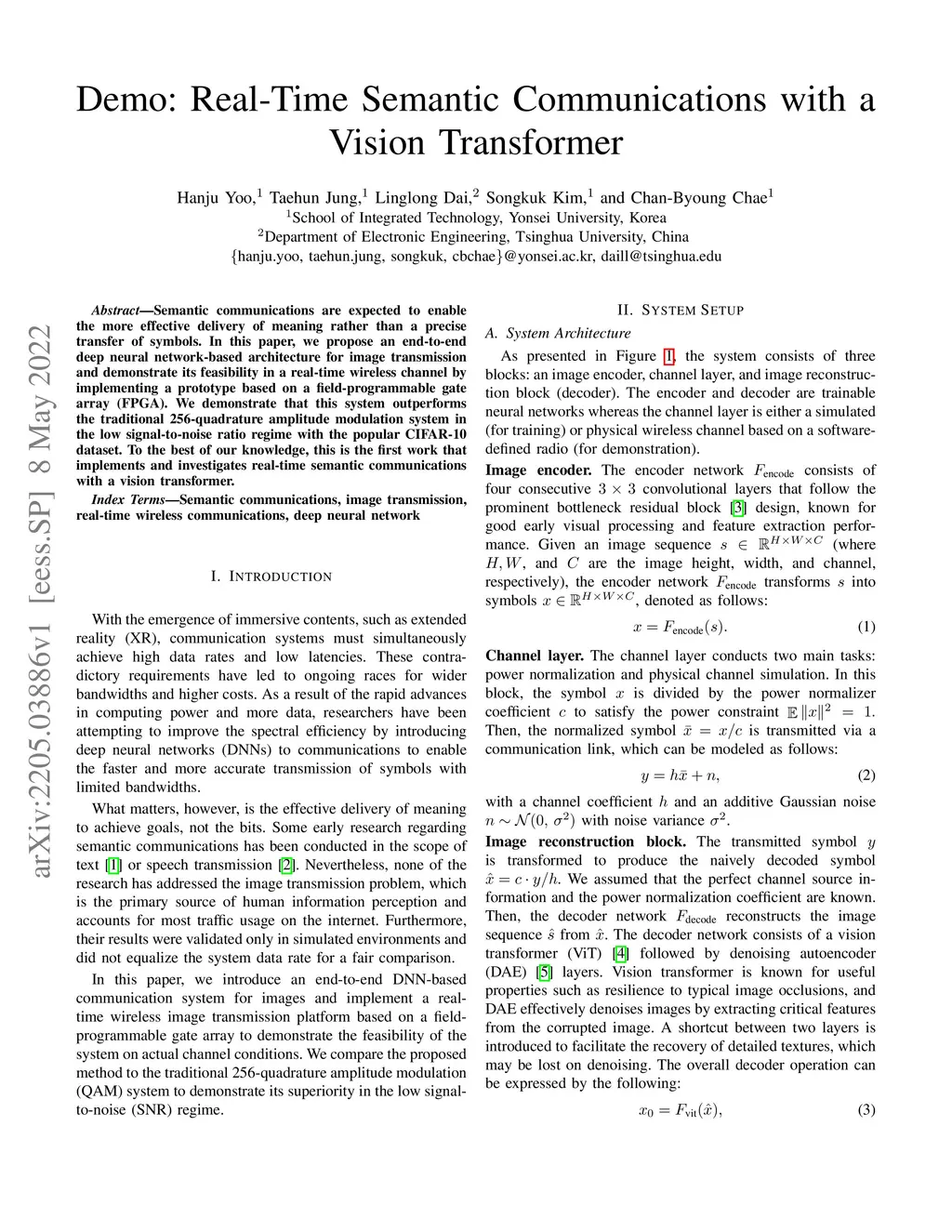 Demo: Real-Time Semantic Communications with a Vision Transformer