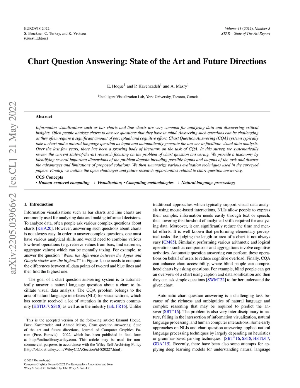 Chart Question Answering: State of the Art and Future Directions
