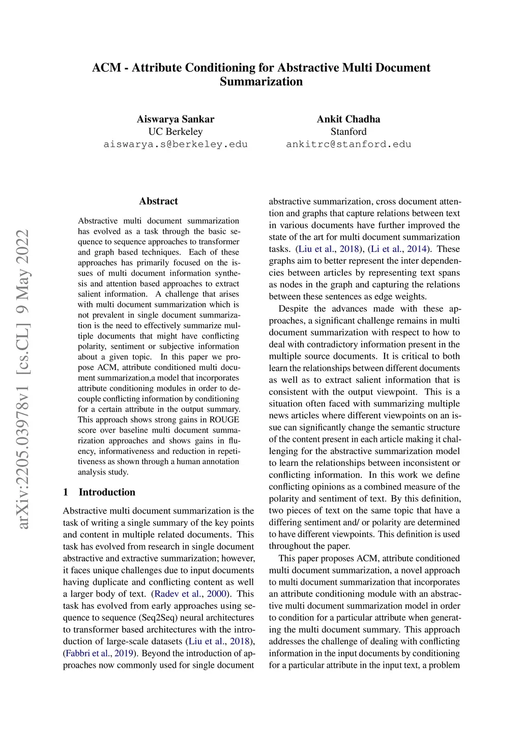 ACM -- Attribute Conditioning for Abstractive Multi Document