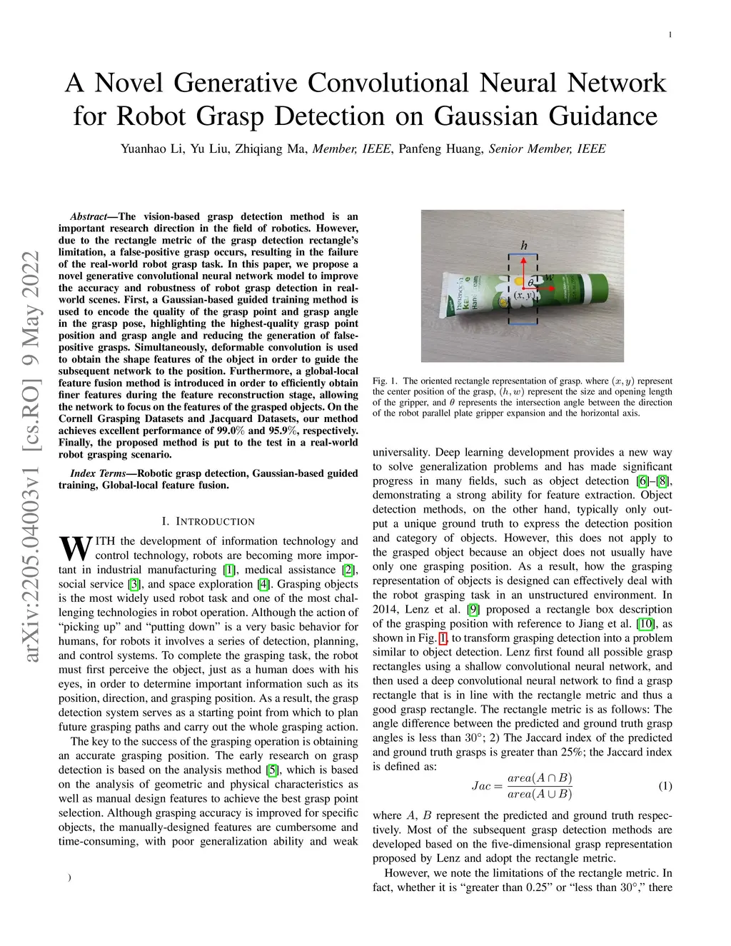 A Novel Generative Convolutional Neural Network for Robot Grasp