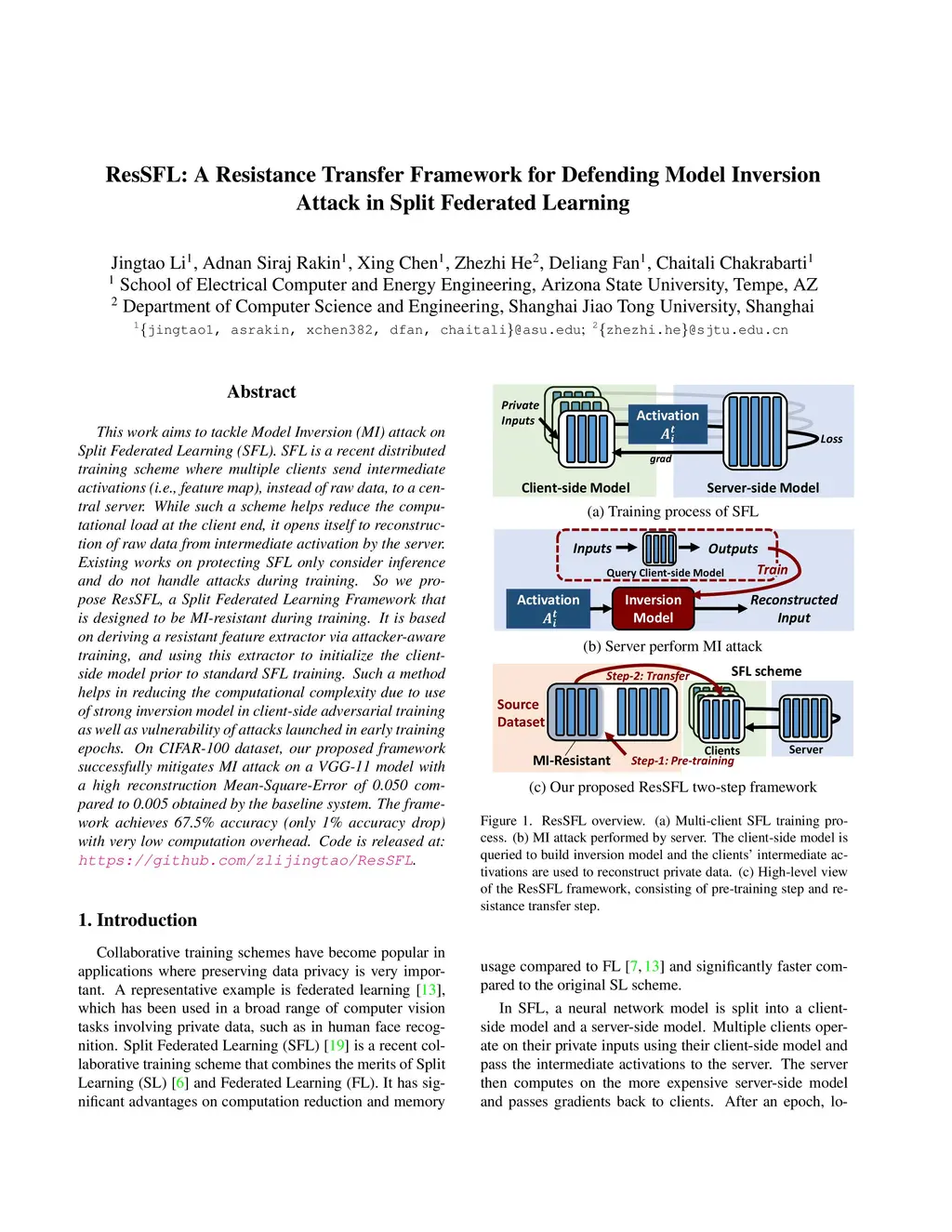 ResSFL: A Resistance Transfer Framework for Defending Model Inversion