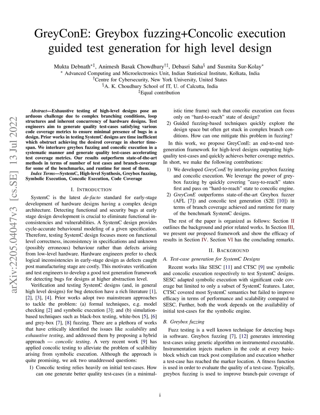 Exhaustive testing of high-level designs pose an arduous challenge due to complex branching conditions, loop structures and inherent concurrency of hardware designs. Test engineers aim to generate quality test-cases satisfying various code coverage metrics to ensure minimal presence of bugs in a design. Prior works in testing SystemC designs are time inefficient which obstruct achieving the desired coverage in shorter time-span. We interleave greybox fuzzing and concolic execution in a systematic manner and generate quality test-cases accelerating test coverage metrics. Our results outperform state-of-the-art methods in terms of number of test cases and branch-coverage for some of the benchmarks, and runtime for most of them.