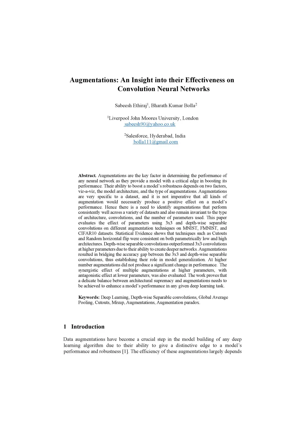 Augmentations are the key factor in determining the performance of any neural network as they provide a model with a critical edge in boosting its performance. Their ability to boost a model's robustness depends on two factors, viz-a-viz, the model architecture, and the type of augmentations. Augmentations are very specific to a dataset, and it is not imperative that all kinds of augmentation would necessarily produce a positive effect on a model's performance. Hence there is a need to identify augmentations that perform consistently well across a variety of datasets and also remain invariant to the type of architecture, convolutions, and the number of parameters used. Hence there is a need to identify augmentations that perform consistently well across a variety of datasets and also remain invariant to the type of architecture, convolutions, and the number of parameters used. This paper evaluates the effect of parameters using 3x3 and depth-wise separable convolutions on different augmentation techniques on MNIST, FMNIST, and CIFAR10 datasets. Statistical Evidence shows that techniques such as Cutouts and Random horizontal flip were consistent on both parametrically low and high architectures. Depth-wise separable convolutions outperformed 3x3 convolutions at higher parameters due to their ability to create deeper networks. Augmentations resulted in bridging the accuracy gap between the 3x3 and depth-wise separable convolutions, thus establishing their role in model generalization. At higher number augmentations did not produce a significant change in performance. The synergistic effect of multiple augmentations at higher parameters, with antagonistic effect at lower parameters, was also evaluated. The work proves that a delicate balance between architectural supremacy and augmentations needs to be achieved to enhance a model's performance in any given deep learning task.