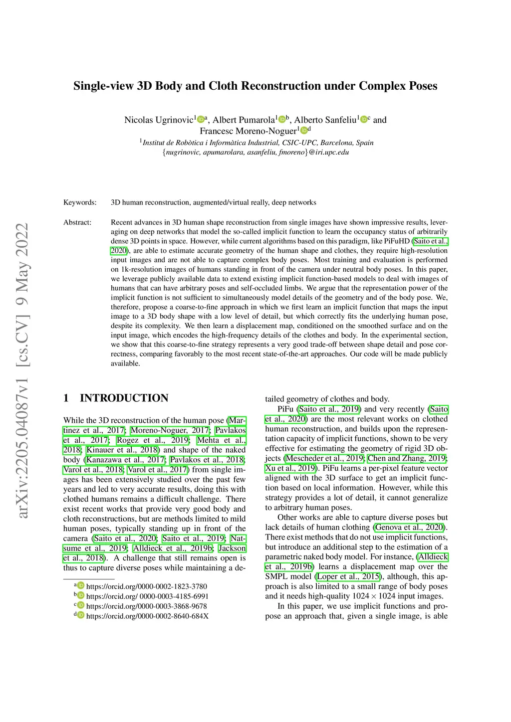 Single-view 3D Body and Cloth Reconstruction under Complex Poses