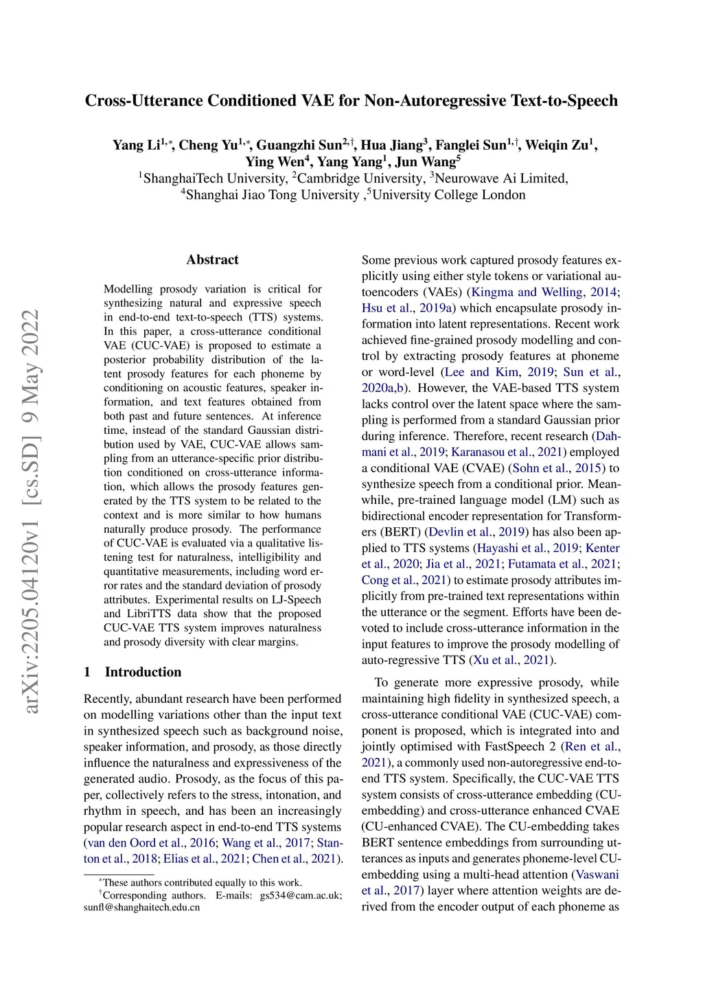 Cross-Utterance Conditioned VAE for Non-Autoregressive Text-to-Speech