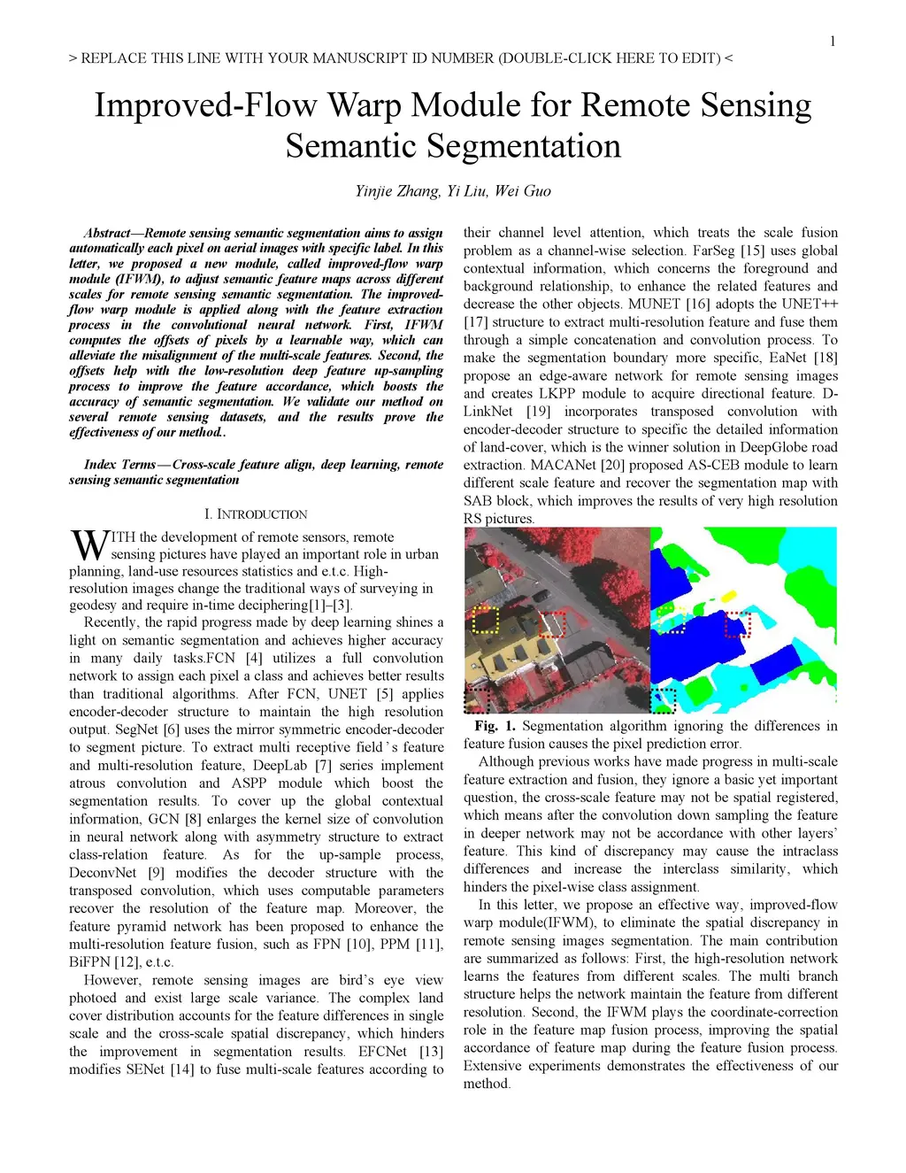 Improved-Flow Warp Module for Remote Sensing Semantic Segmentation