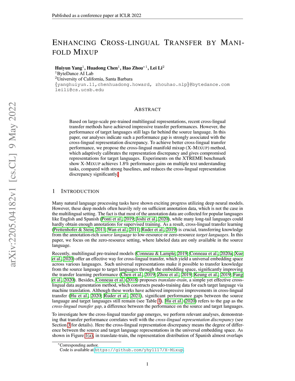 Enhancing Cross-lingual Transfer by Manifold Mixup