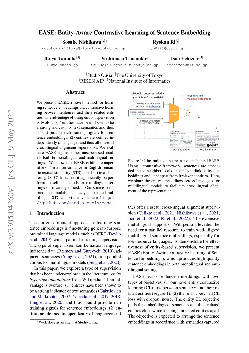 EASE: Entity-Aware Contrastive Learning of Sentence Embedding