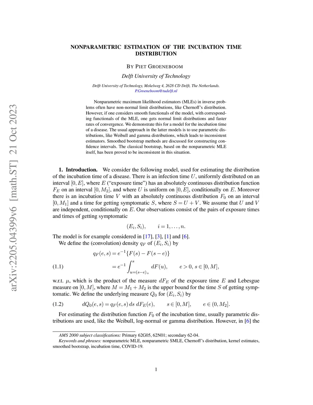 Nonparametric maximum likelihood estimators (MLEs) in inverse problems often have non-normal limit distributions, like Chernoff's distribution. However, if one considers smooth functionals of the model, with corresponding functionals of the MLE, one gets normal limit distributions and faster rates of convergence. We demonstrate this for a model for the incubation time of a disease. The usual approach in the latter models is to use parametric distributions, like Weibull and gamma distributions, which leads to inconsistent estimators. Smoothed bootstrap methods are discussed for constructing confidence intervals. The classical bootstrap, based on the nonparametric MLE itself, has been proved to be inconsistent in this situation.