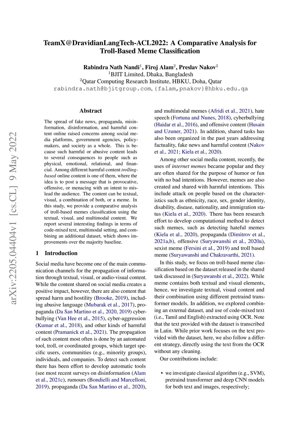 TeamX@DravidianLangTech-ACL2022: A Comparative Analysis for Troll-Based