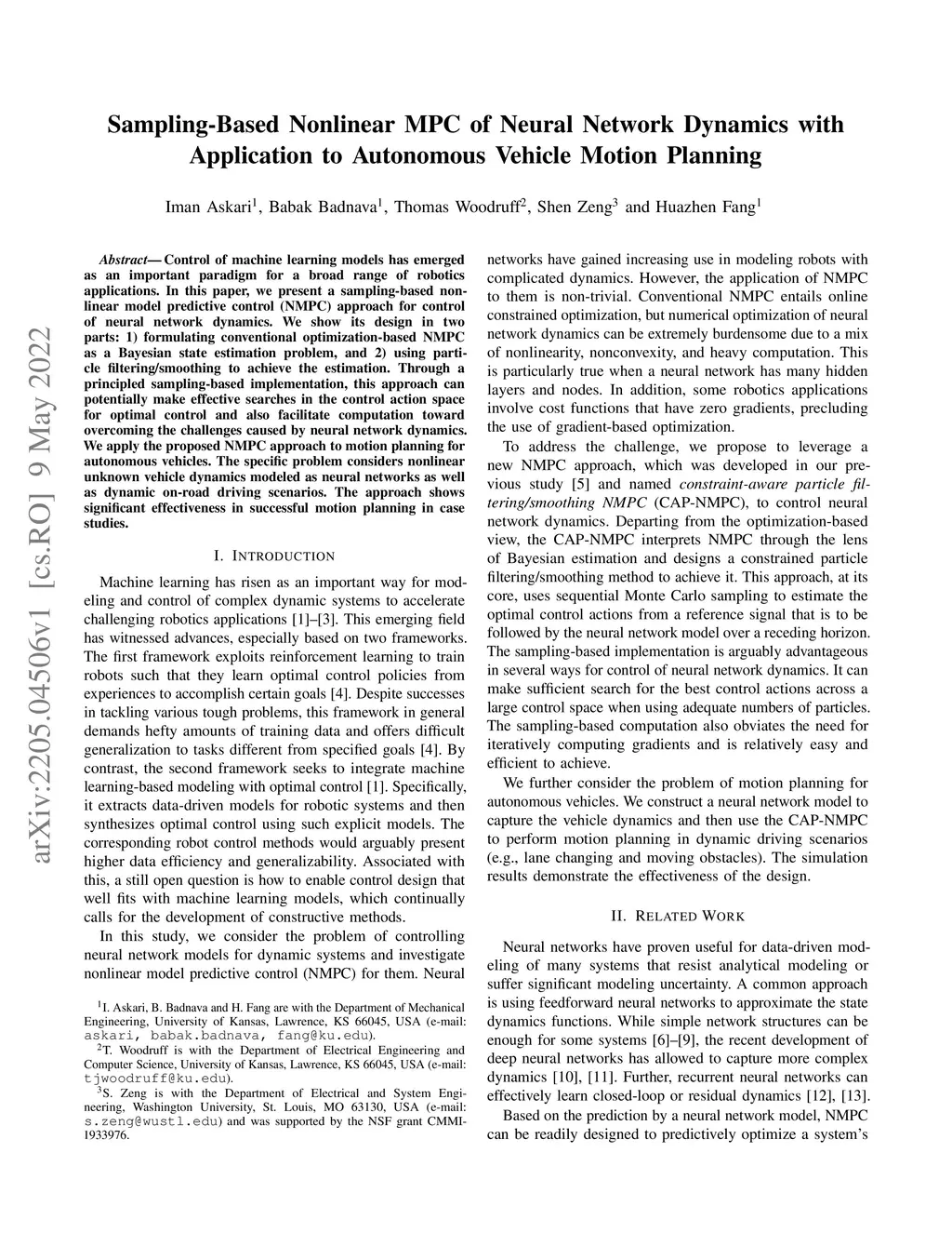 Sampling-Based Nonlinear MPC of Neural Network Dynamics with Application