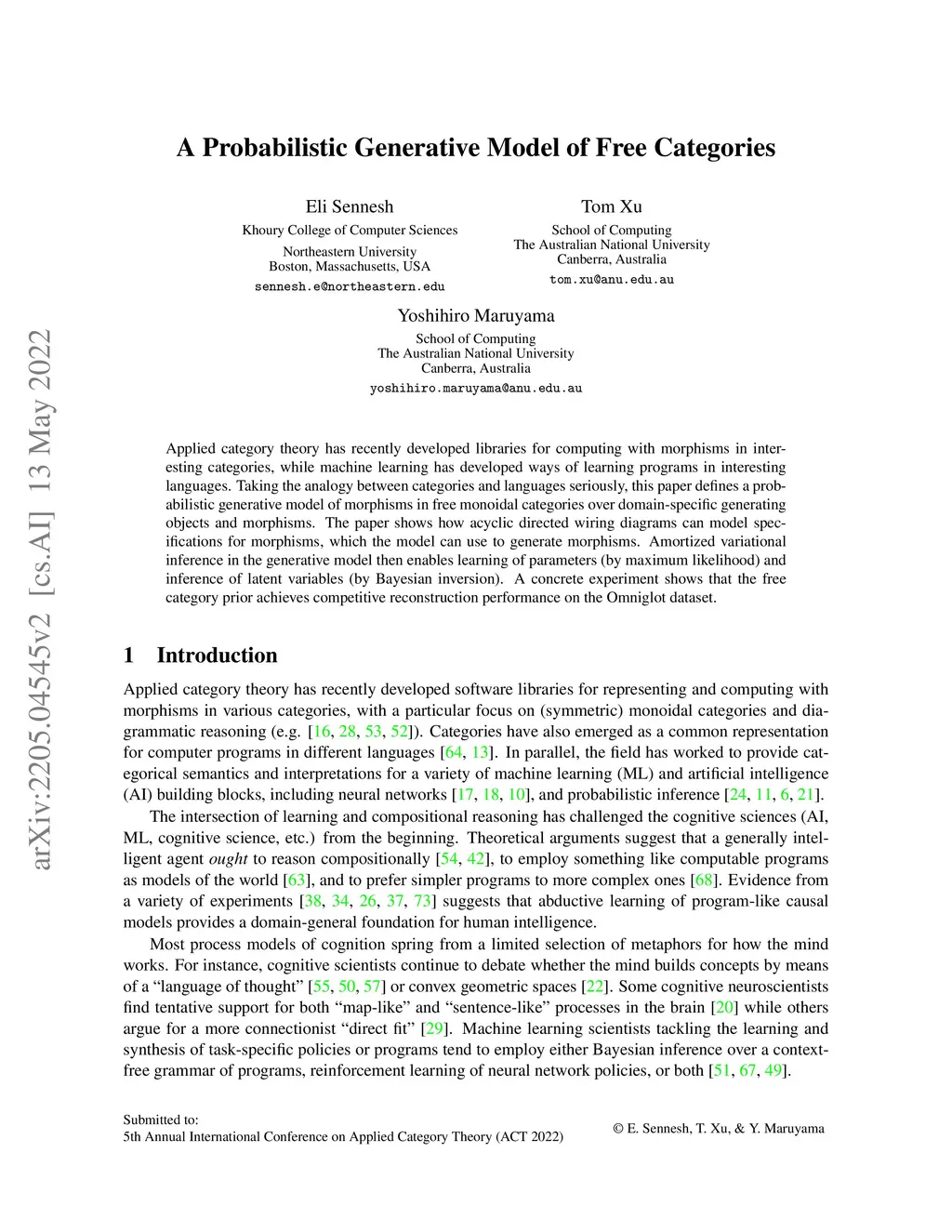 A Probabilistic Generative Model of Free Categories