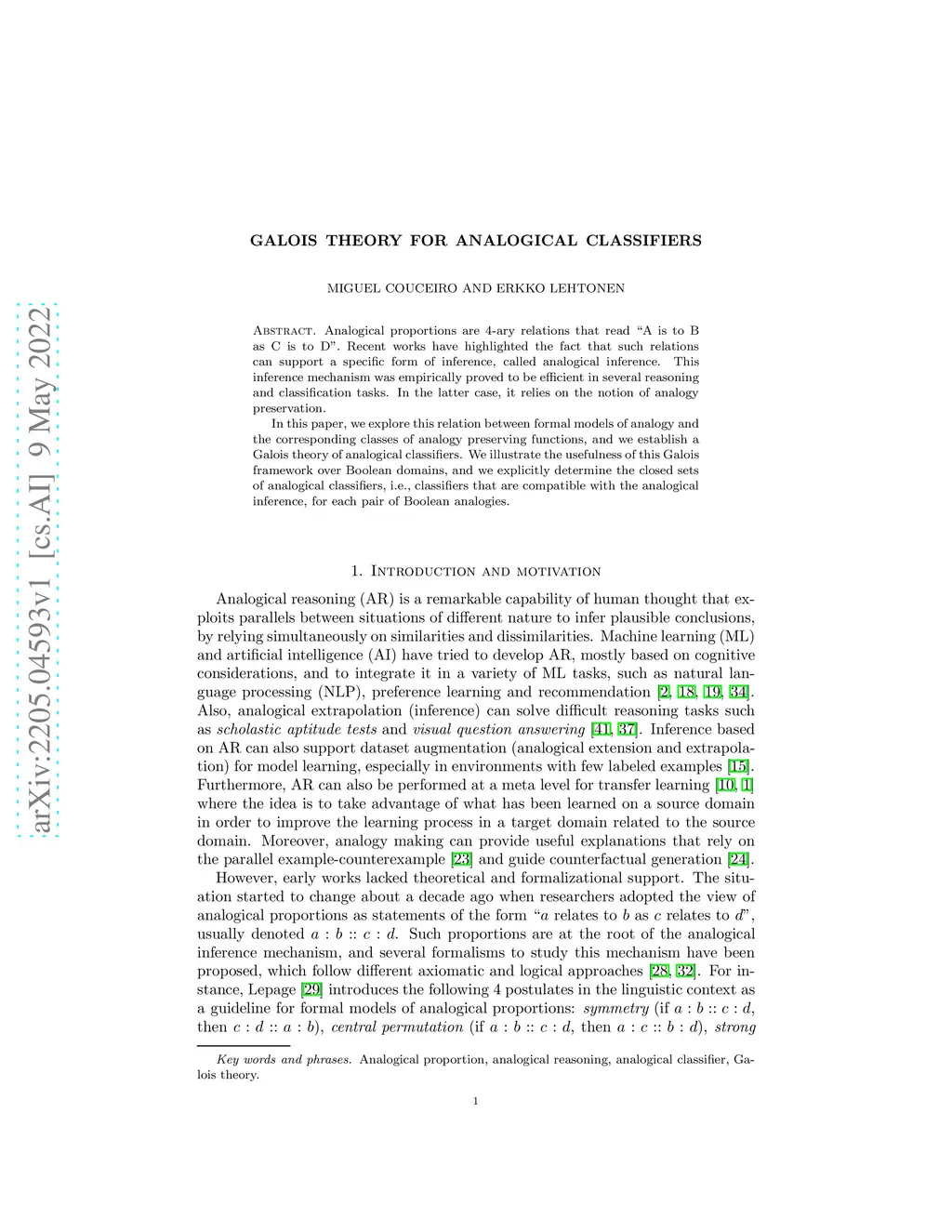 Galois theory for analogical classifiers