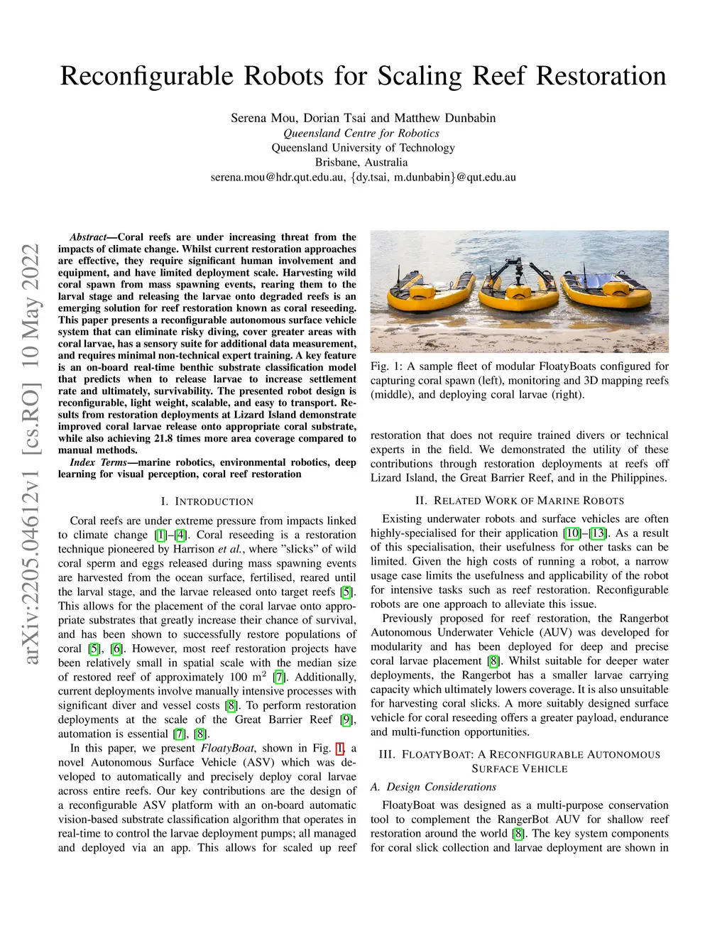 Coral reefs are under increasing threat from the impacts of climate change. Whilst current restoration approaches are effective, they require significant human involvement and equipment, and have limited deployment scale. Harvesting wild coral spawn from mass spawning events, rearing them to the larval stage and releasing the larvae onto degraded reefs is an emerging solution for reef restoration known as coral reseeding. This paper presents a reconfigurable autonomous surface vehicle system that can eliminate risky diving, cover greater areas with coral larvae, has a sensory suite for additional data measurement, and requires minimal non-technical expert training. A key feature is an on-board real-time benthic substrate classification model that predicts when to release larvae to increase settlement rate and ultimately, survivability. The presented robot design is reconfigurable, light weight, scalable, and easy to transport. Results from restoration deployments at Lizard Island demonstrate improved coral larvae release onto appropriate coral substrate, while also achieving 21.8 times more area coverage compared to manual methods.