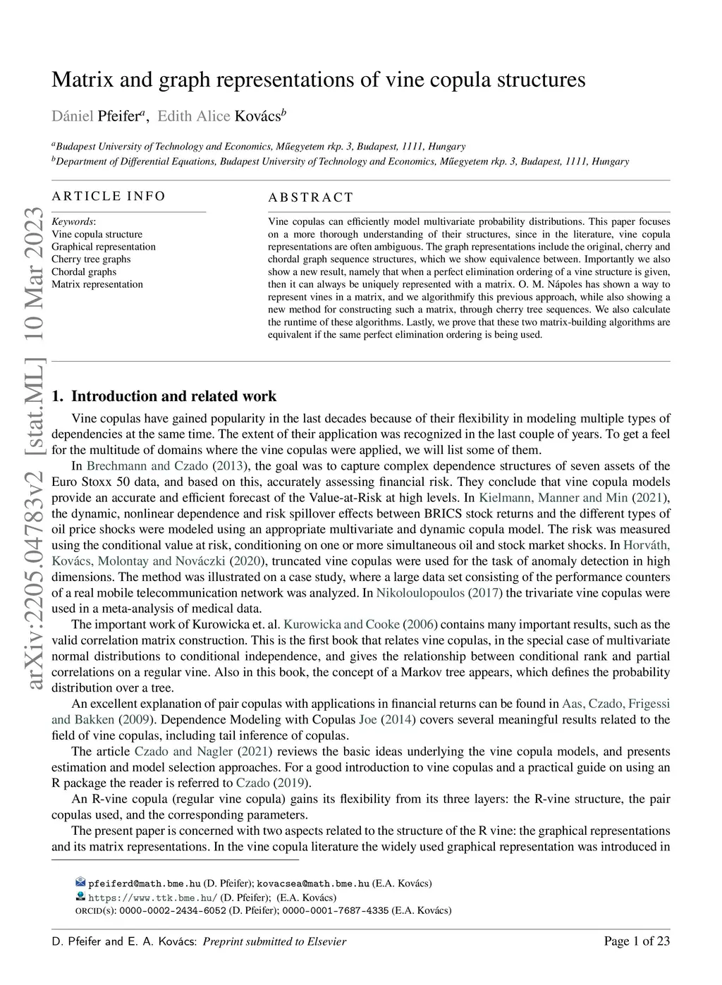 Vine copulas can efficiently model multivariate probability distributions. This paper focuses on a more thorough understanding of their structures, since in the literature, vine copula representations are often ambiguous. The graph representations include the original, cherry and chordal graph sequence structures, which we show equivalence between. Importantly we also show a new result, namely that when a perfect elimination ordering of a vine structure is given, then it can always be uniquely represented with a matrix. O. M. N\ápoles has shown a way to represent vines in a matrix, and we algorithmify this previous approach, while also showing a new method for constructing such a matrix, through cherry tree sequences. We also calculate the runtime of these algorithms. Lastly, we prove that these two matrix-building algorithms are equivalent if the same perfect elimination ordering is being used.