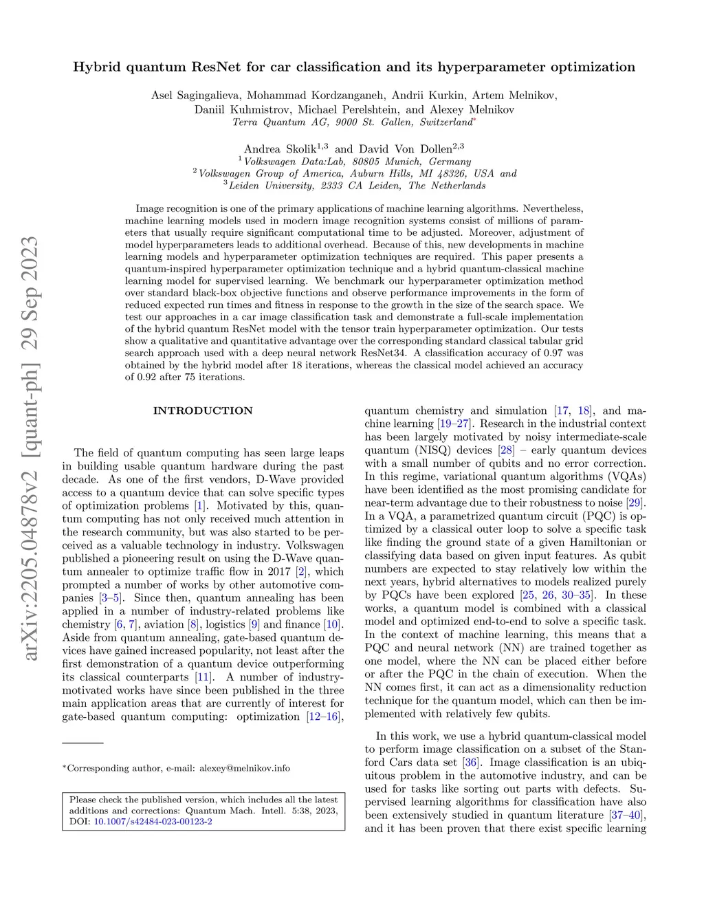 Hybrid quantum ResNet for car classification and its hyperparameter