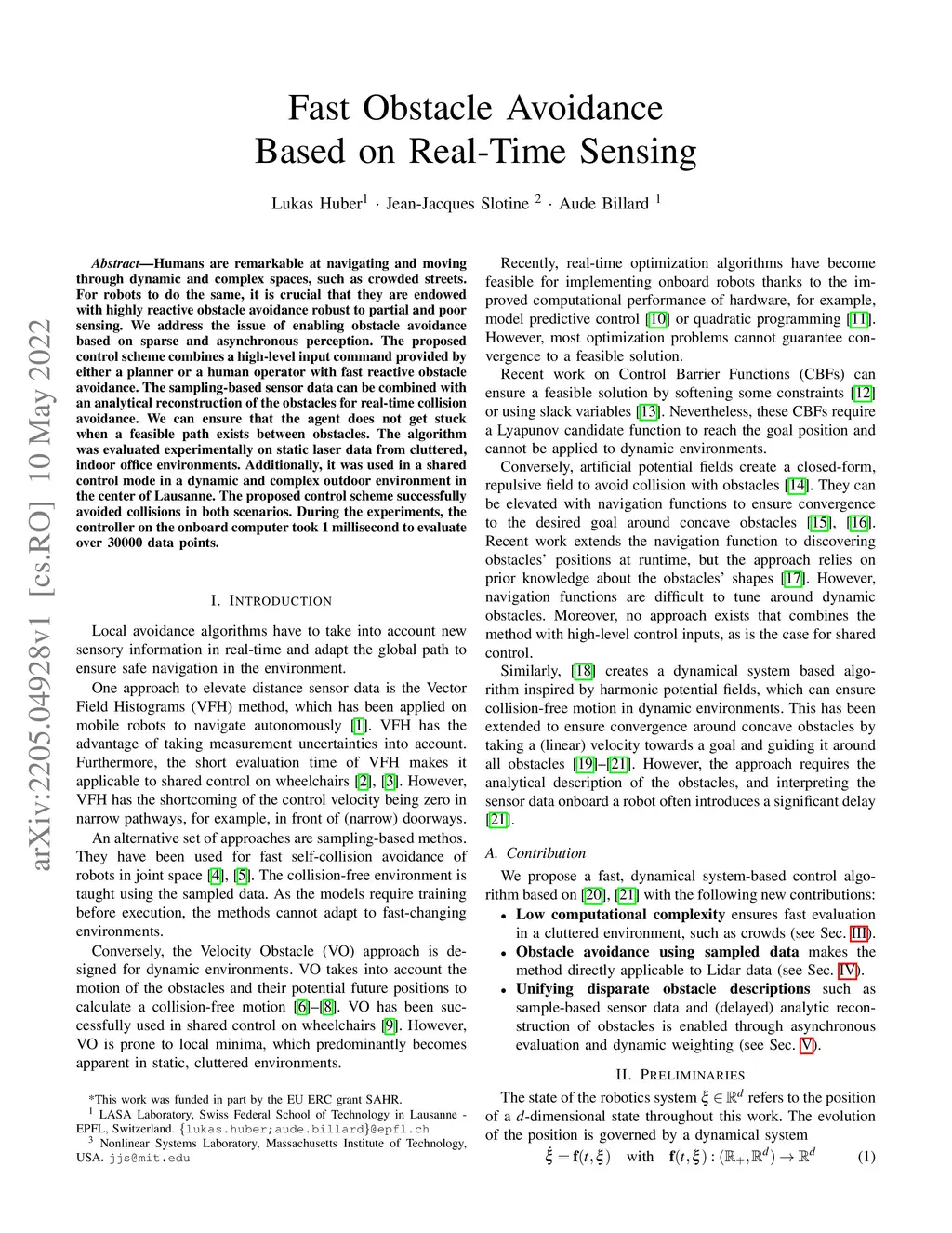 Fast Obstacle Avoidance Based on Real-Time Sensing