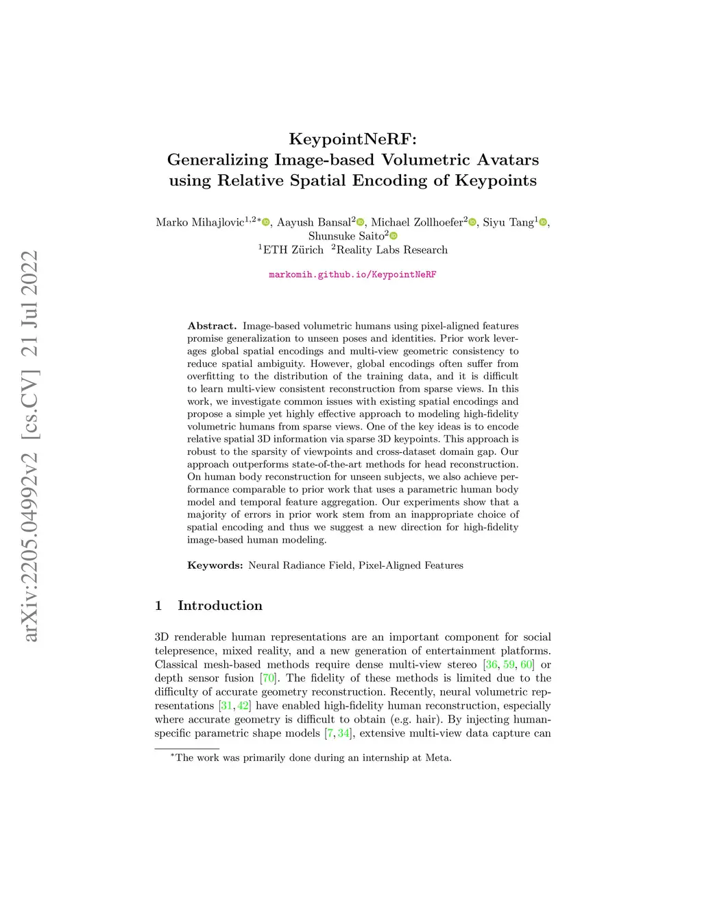 KeypointNeRF: Generalizing Image-based Volumetric Avatars using Relative