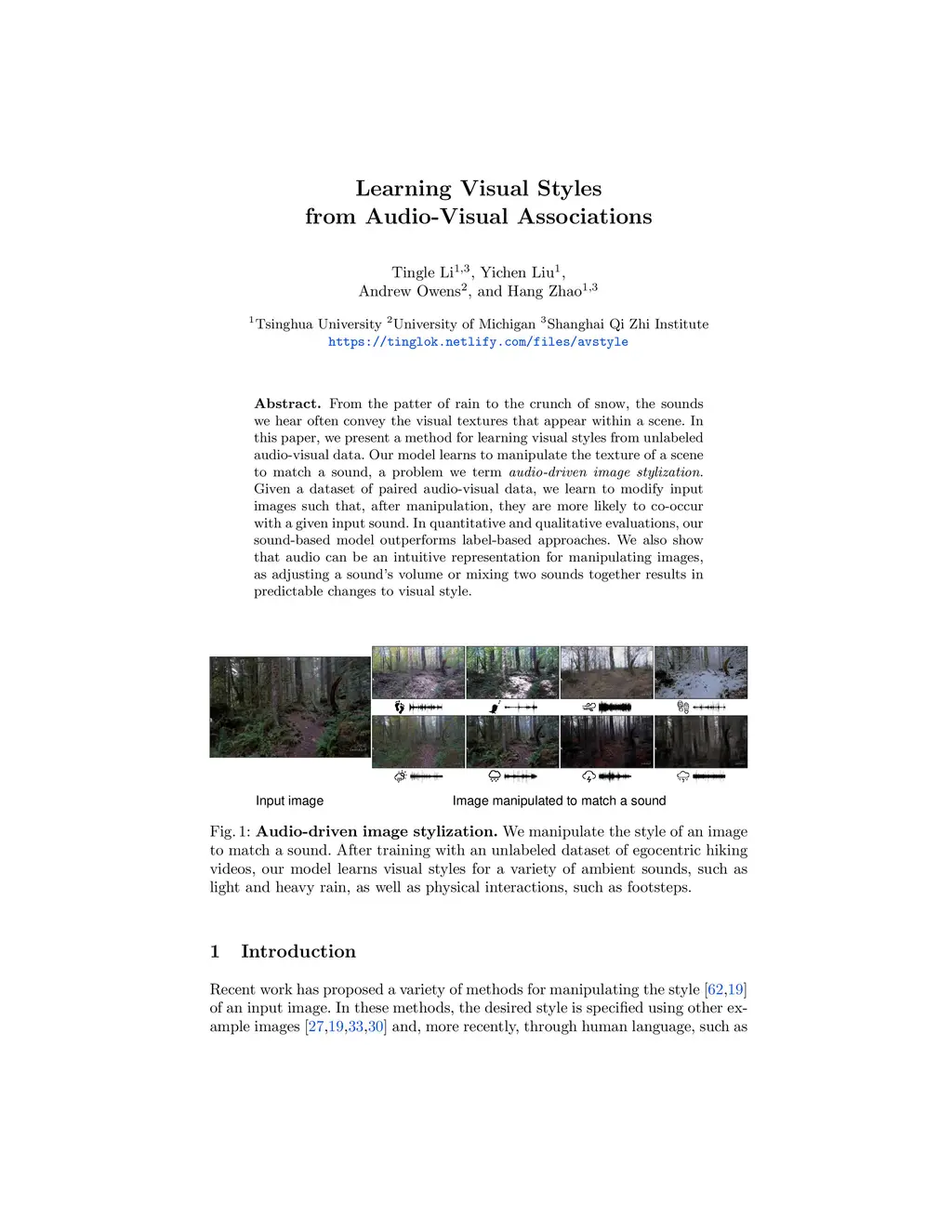 From the patter of rain to the crunch of snow, the sounds we hear often convey the visual textures that appear within a scene. In this paper, we present a method for learning visual styles from unlabeled audio-visual data. Our model learns to manipulate the texture of a scene to match a sound, a problem we term audio-driven image stylization. Given a dataset of paired audio-visual data, we learn to modify input images such that, after manipulation, they are more likely to co-occur with a given input sound. In quantitative and qualitative evaluations, our sound-based model outperforms label-based approaches. We also show that audio can be an intuitive representation for manipulating images, as adjusting a sound's volume or mixing two sounds together results in predictable changes to visual style. Project webpage: https://tinglok.netlify.app/files/avstyle