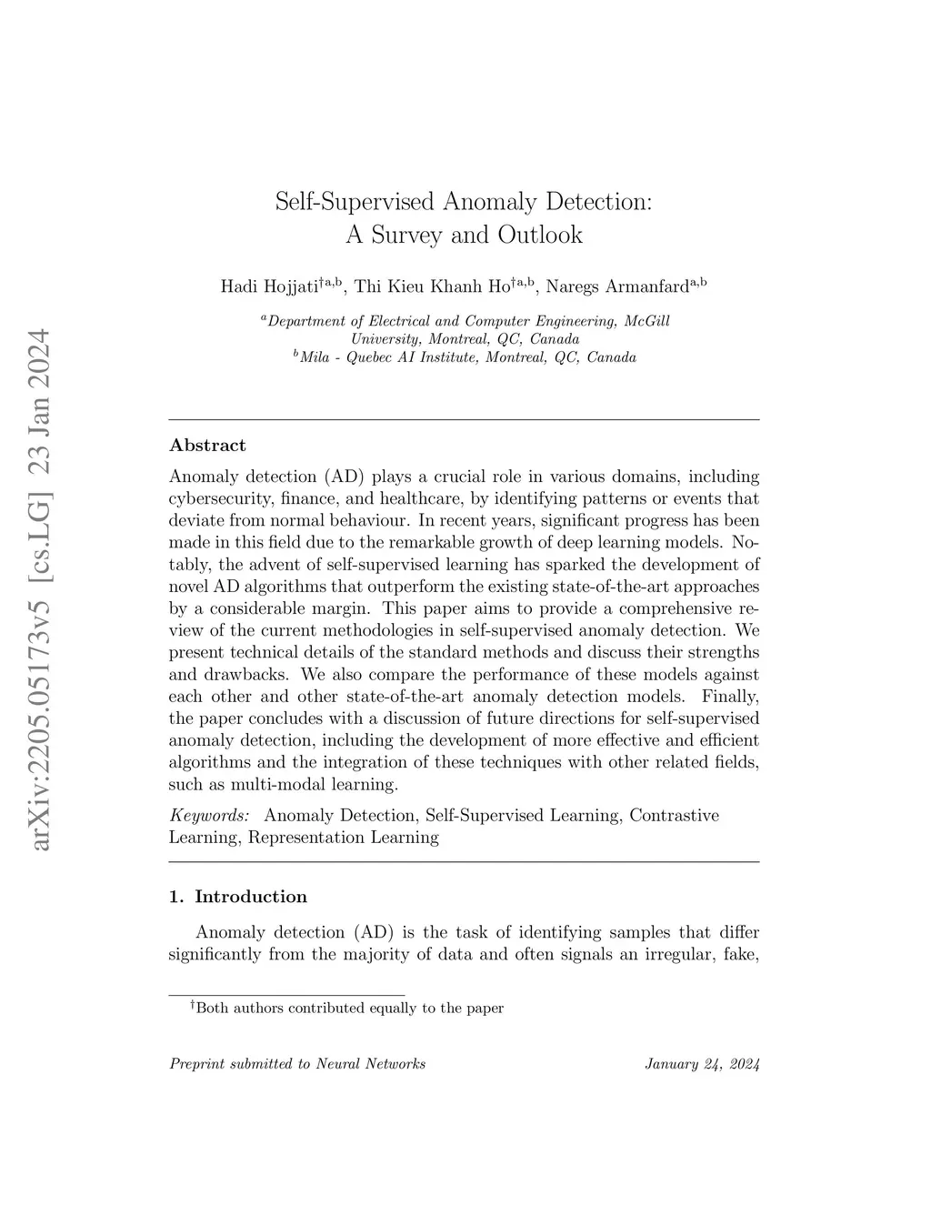 Anomaly detection (AD) plays a crucial role in various domains, including cybersecurity, finance, and healthcare, by identifying patterns or events that deviate from normal behaviour. In recent years, significant progress has been made in this field due to the remarkable growth of deep learning models. Notably, the advent of self-supervised learning has sparked the development of novel AD algorithms that outperform the existing state-of-the-art approaches by a considerable margin. This paper aims to provide a comprehensive review of the current methodologies in self-supervised anomaly detection. We present technical details of the standard methods and discuss their strengths and drawbacks. We also compare the performance of these models against each other and other state-of-the-art anomaly detection models. Finally, the paper concludes with a discussion of future directions for self-supervised anomaly detection, including the development of more effective and efficient algorithms and the integration of these techniques with other related fields, such as multi-modal learning.