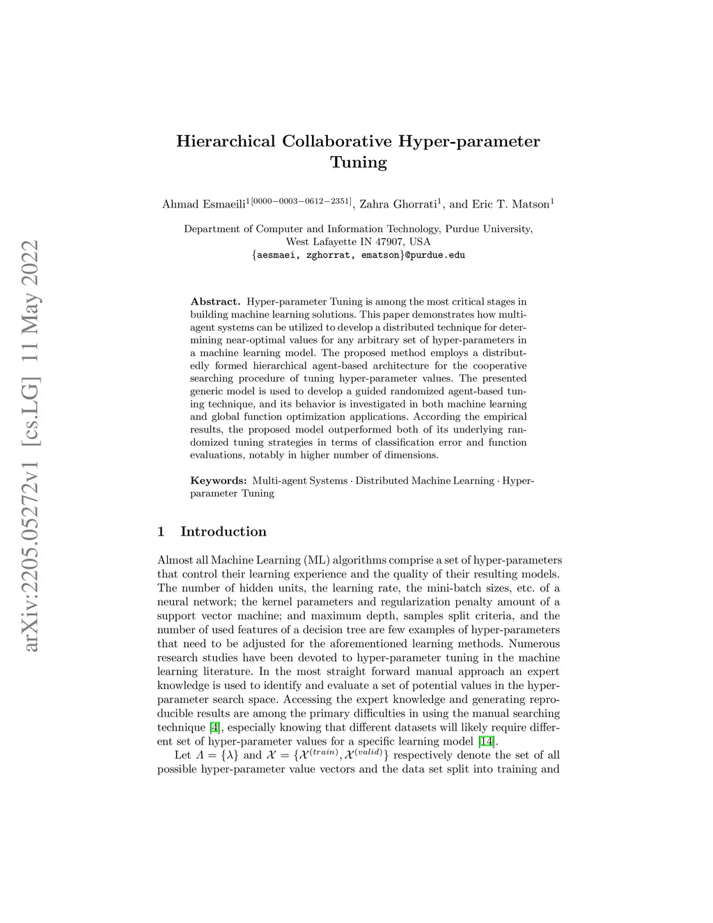 Hyper-parameter Tuning is among the most critical stages in building machine learning solutions. This paper demonstrates how multi-agent systems can be utilized to develop a distributed technique for determining near-optimal values for any arbitrary set of hyper-parameters in a machine learning model. The proposed method employs a distributedly formed hierarchical agent-based architecture for the cooperative searching procedure of tuning hyper-parameter values. The presented generic model is used to develop a guided randomized agent-based tuning technique, and its behavior is investigated in both machine learning and global function optimization applications. According the empirical results, the proposed model outperformed both of its underlying randomized tuning strategies in terms of classification error and function evaluations, notably in higher number of dimensions.