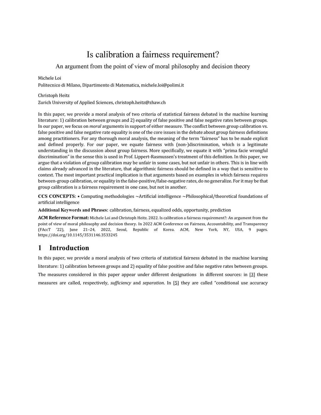Is calibration a fairness requirement? An argument from the point of