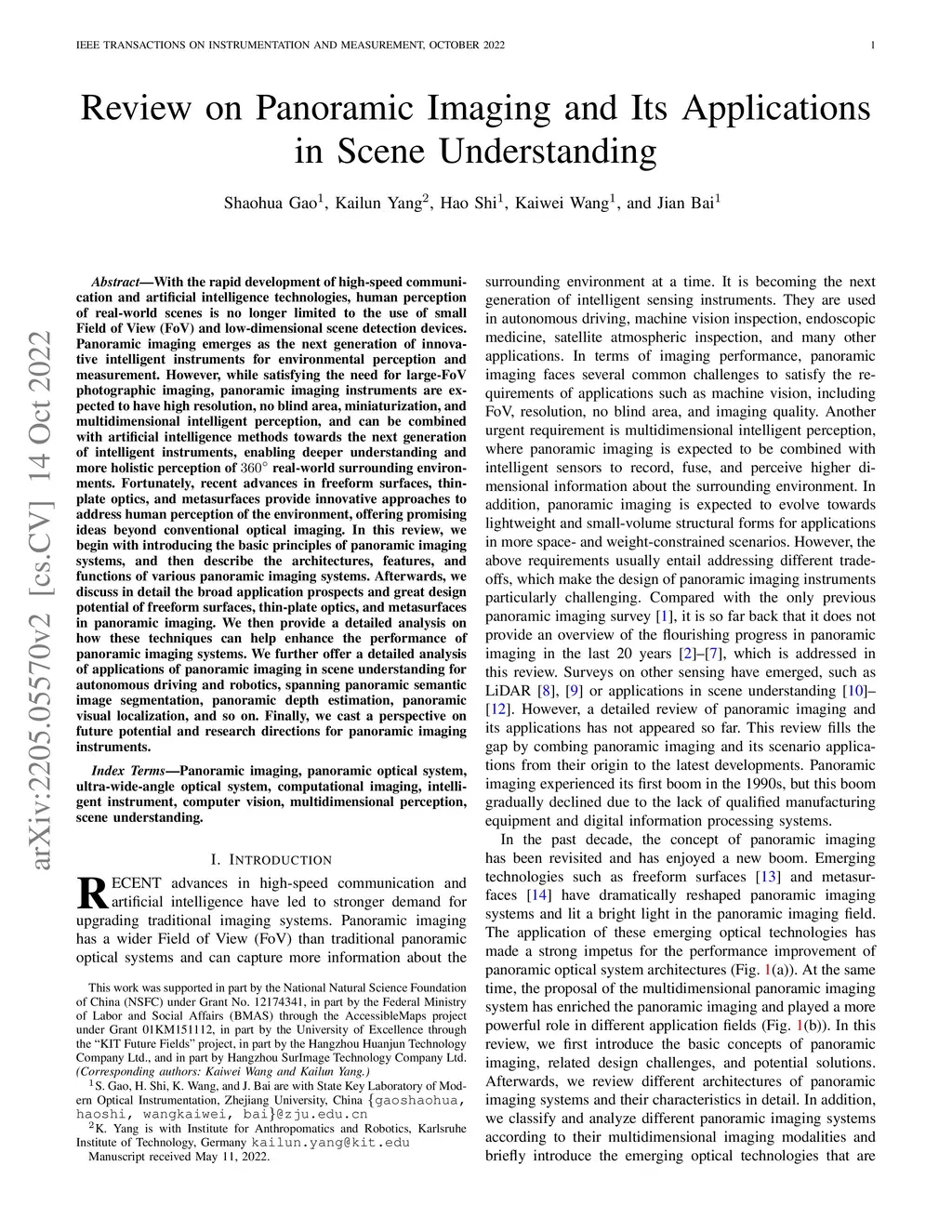 Review on Panoramic Imaging and Its Applications in Scene Understanding
