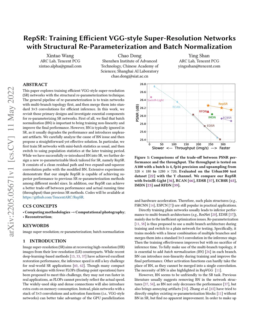 This paper explores training efficient VGG-style super-resolution (SR) networks with the structural re-parameterization technique. The general pipeline of re-parameterization is to train networks with multi-branch topology first, and then merge them into standard 3x3 convolutions for efficient inference. In this work, we revisit those primary designs and investigate essential components for re-parameterizing SR networks. First of all, we find that batch normalization (BN) is important to bring training non-linearity and improve the final performance. However, BN is typically ignored in SR, as it usually degrades the performance and introduces unpleasant artifacts. We carefully analyze the cause of BN issue and then propose a straightforward yet effective solution. In particular, we first train SR networks with mini-batch statistics as usual, and then switch to using population statistics at the later training period. While we have successfully re-introduced BN into SR, we further design a new re-parameterizable block tailored for SR, namely RepSR. It consists of a clean residual path and two expand-and-squeeze convolution paths with the modified BN. Extensive experiments demonstrate that our simple RepSR is capable of achieving superior performance to previous SR re-parameterization methods among different model sizes. In addition, our RepSR can achieve a better trade-off between performance and actual running time (throughput) than previous SR methods. Codes will be available at https://github.com/TencentARC/RepSR.