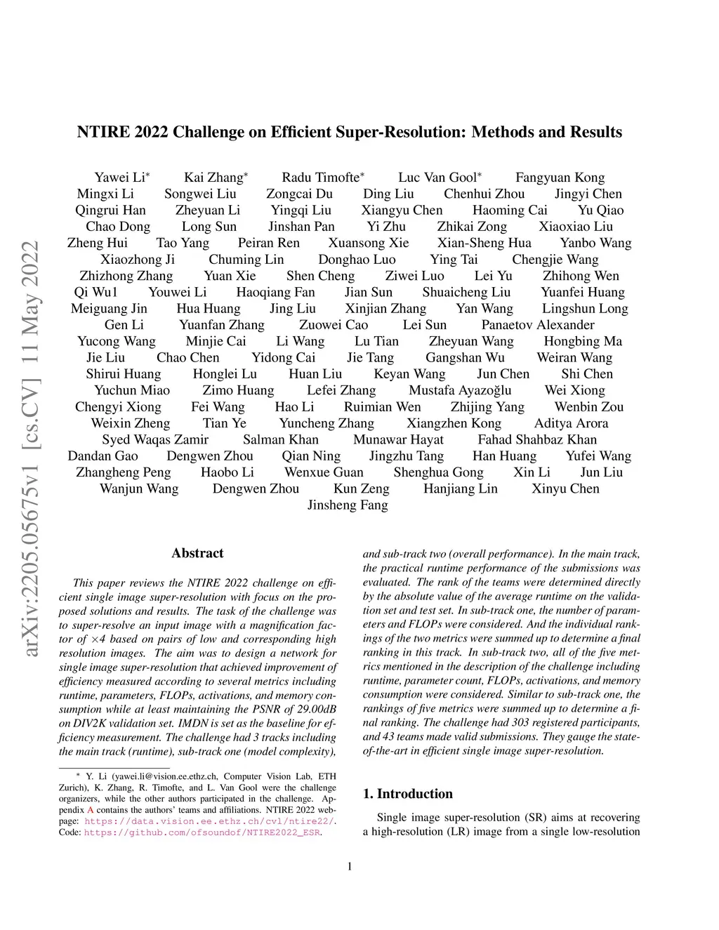 NTIRE 2022 Challenge on Efficient Super-Resolution: Methods and Results