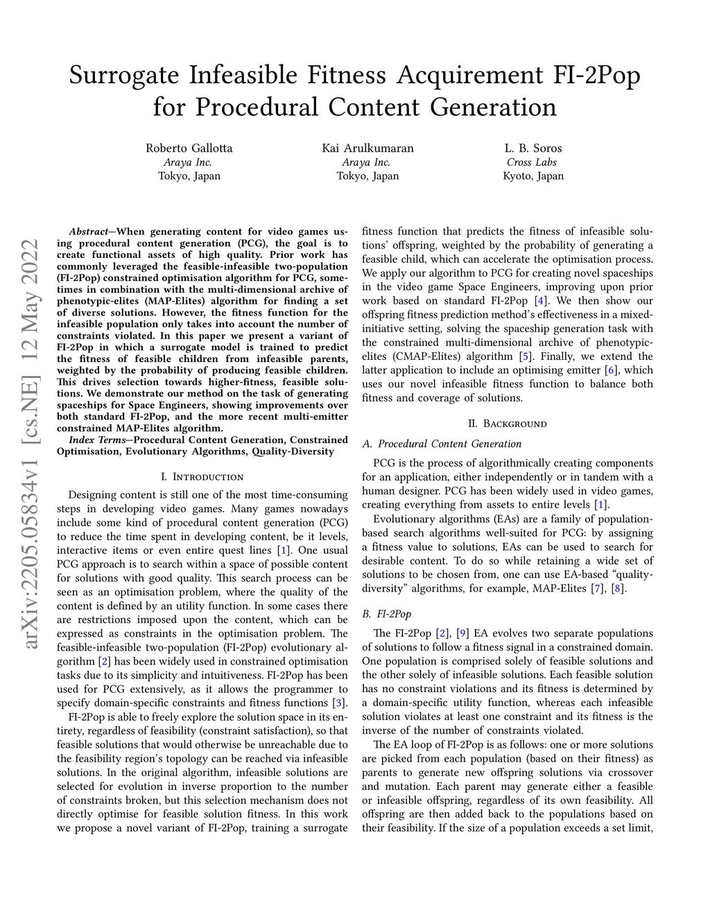 Surrogate Infeasible Fitness Acquirement FI-2Pop for Procedural Content
