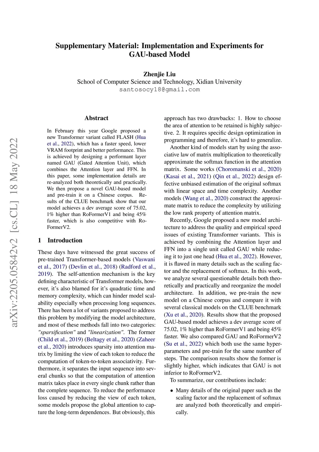 In February this year Google proposed a new Transformer variant called FLASH, which has a faster speed, lower VRAM footprint and better performance. This is achieved by designing a performant layer named GAU (Gated Attention Unit), which combines the Attention layer and FFN. In this paper, some implementation details are re-analyzed both theoretically and practically. We then propose a novel GAU-based model and pre-train it on a Chinese corpus. Results of the CLUE benchmark show that our model achieves a dev average score of 75.02, 1% higher than RoFormerV1 and being 45% faster, which is also competitive with RoFormerV2.