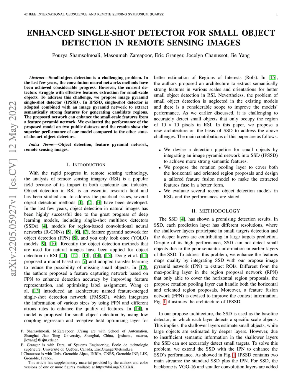 Enhanced Single-shot Detector for Small Object Detection in Remote