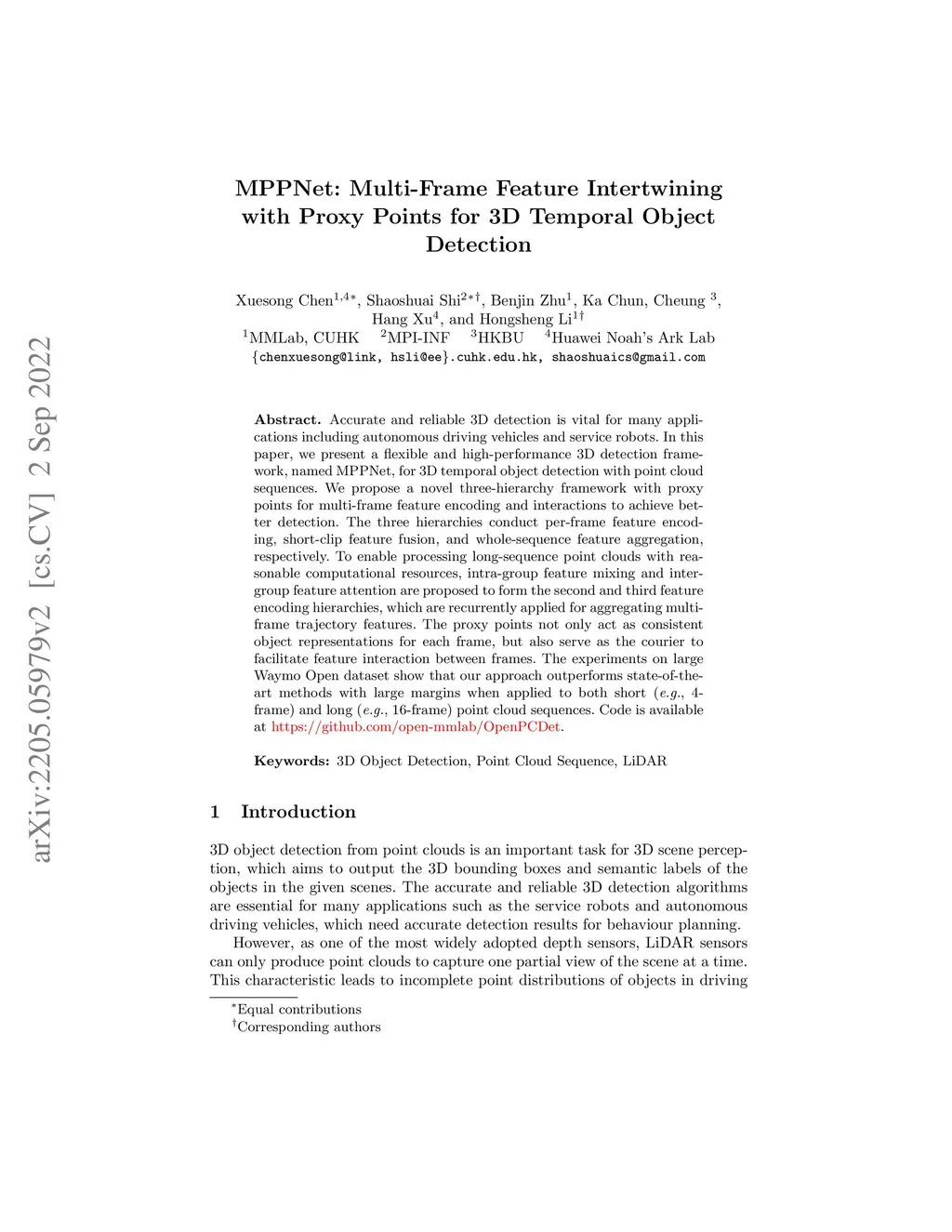 MPPNet: Multi-Frame Feature Intertwining with Proxy Points for 3D
