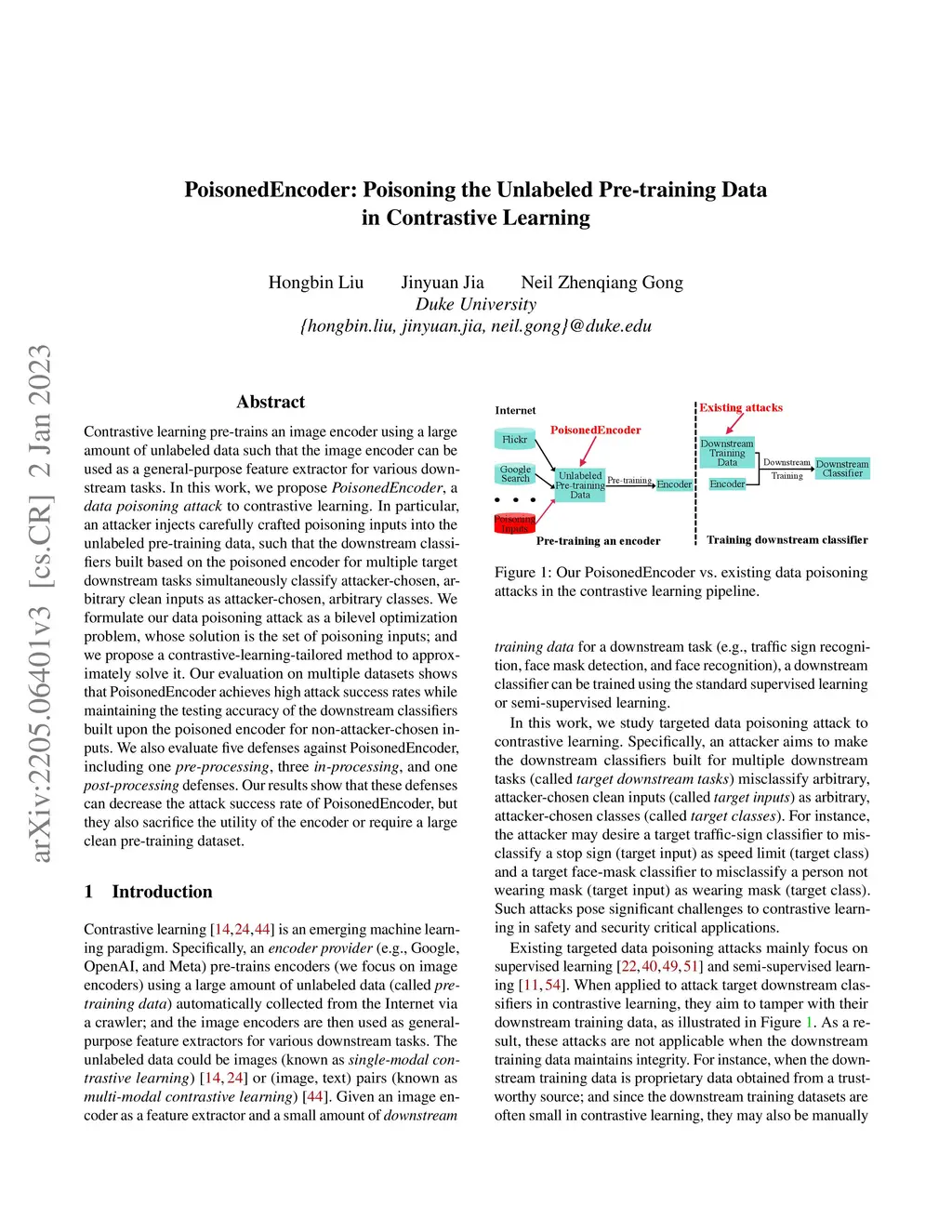 PoisonedEncoder: Poisoning the Unlabeled Pre-training Data in
